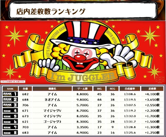 そして、同率で2位に【ネオアイム・688番台】の+3,650枚、3位も【アイム・706番台】の+2,550枚がランクイン👍