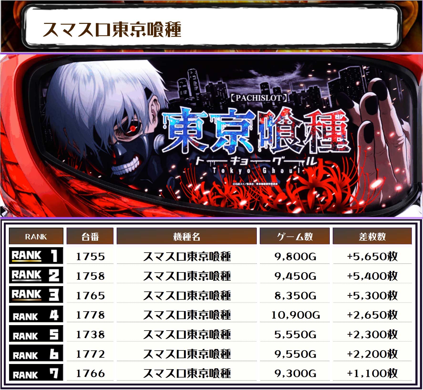 スマスロ東京喰種の設置台数はご覧の通り🔎