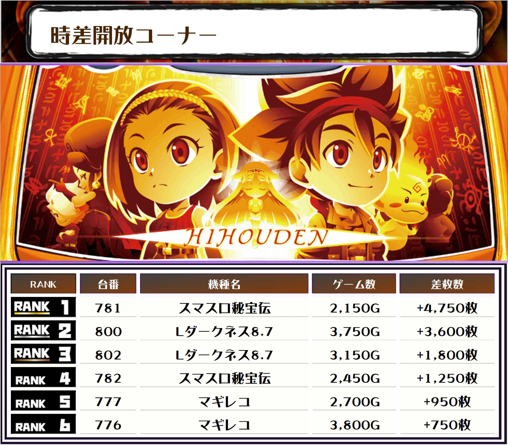 あと、取材当日は時差開放台もありまして、対象となった機種はご覧の通り📝こちらのコーナーのランキングも最後にご覧いただきましょう👀