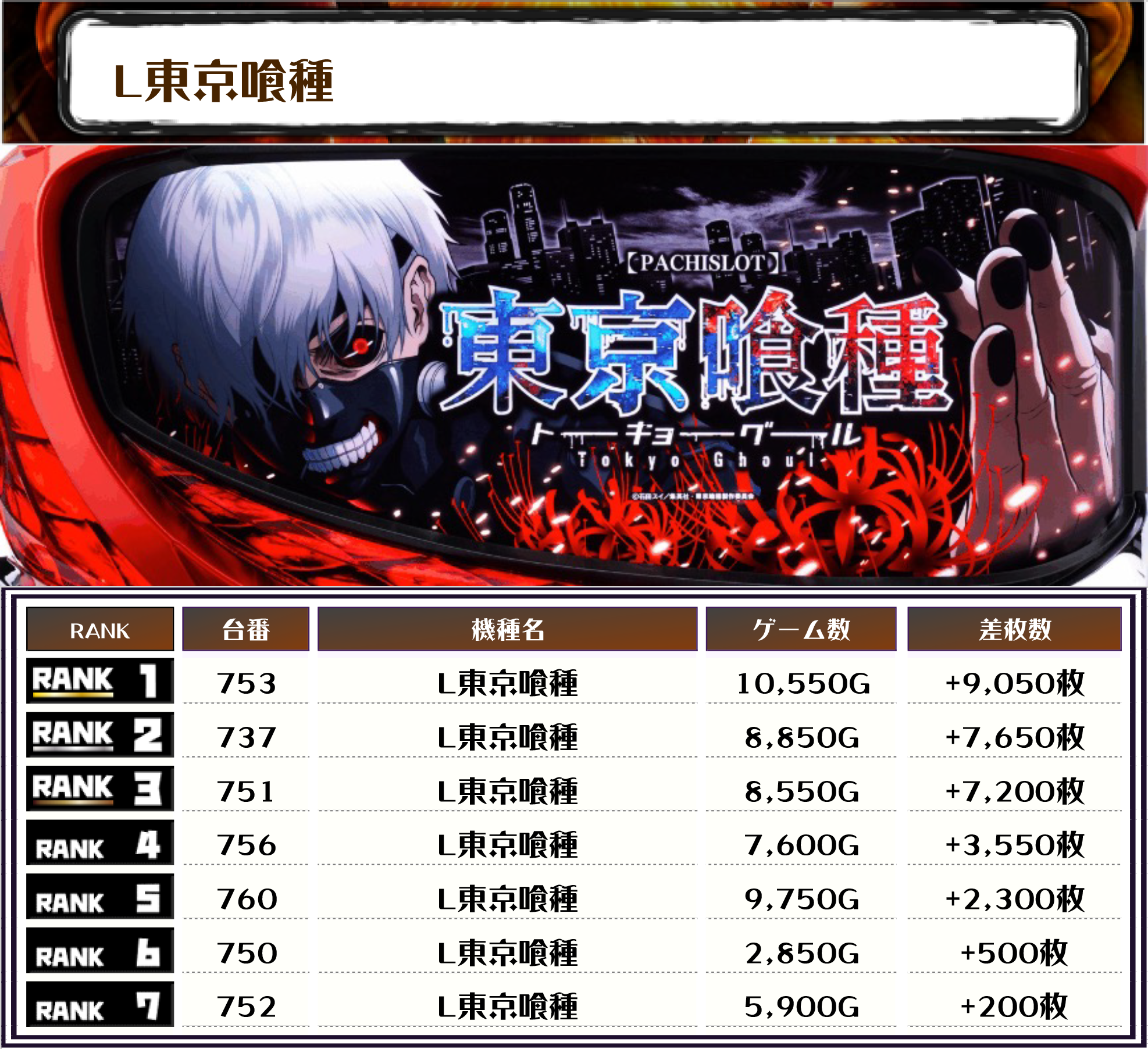 スマスロ東京喰種の設置台数はご覧の通り🔎