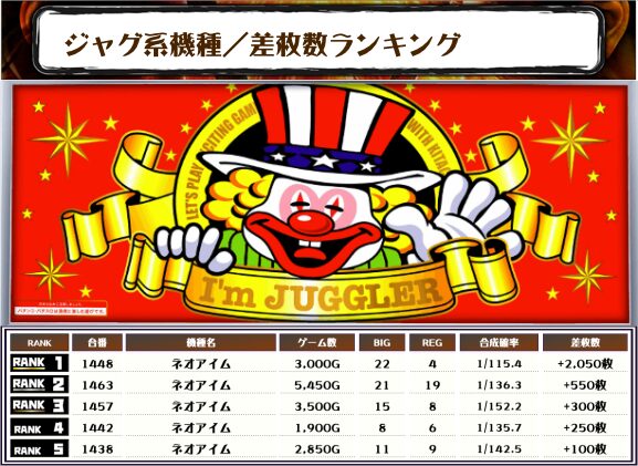 また、2位には【ネオアイム・1463番台】の+550枚、3位には【ネオアイム・1457番台】の+300枚がランクインっ