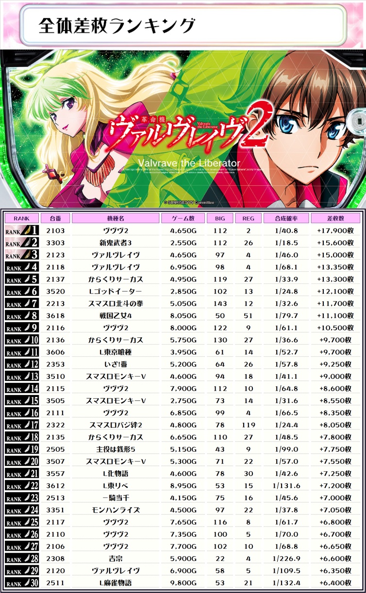 今回の調査では、好調機種を複数発見!