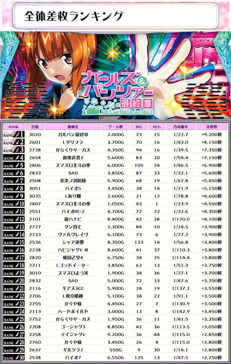 今回の調査では、2.3台構成の旧機種に好調な台が多く、