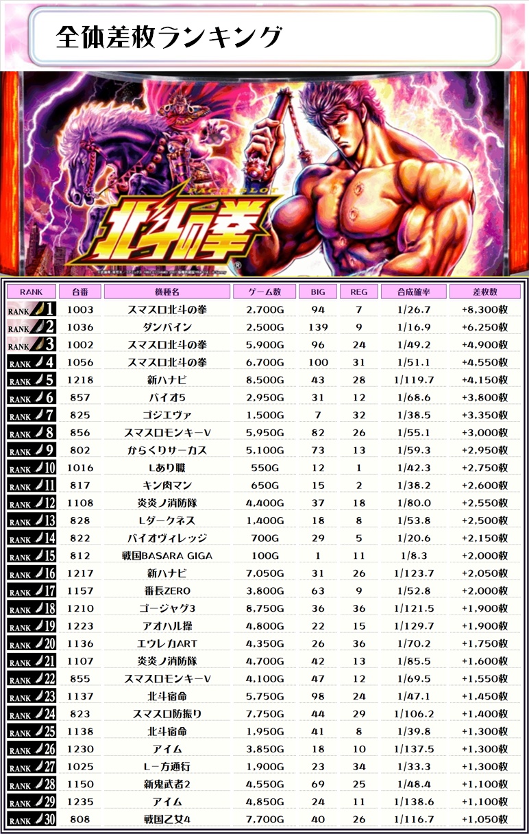 今回の調査ではスマスロだけでなく、6.5号やメダル機にも好調な台が多かったですね☆
