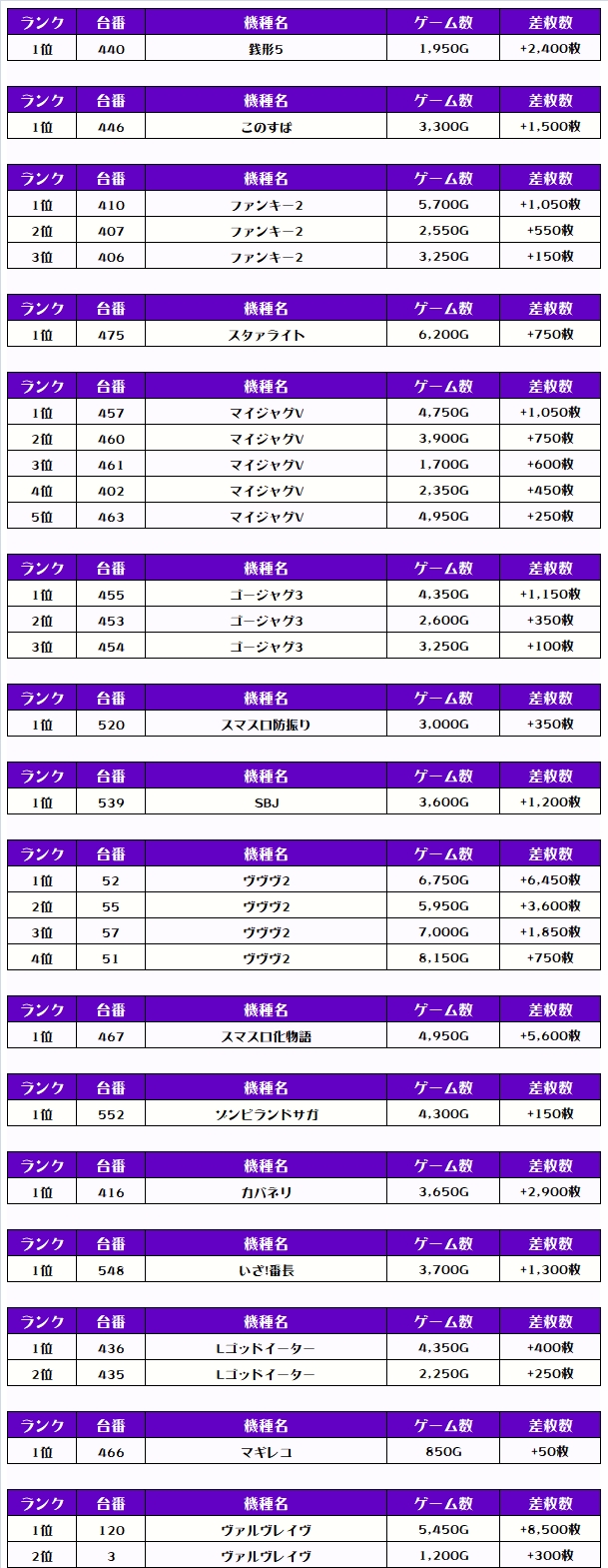 その他の機種の差枚はコチラ❗️