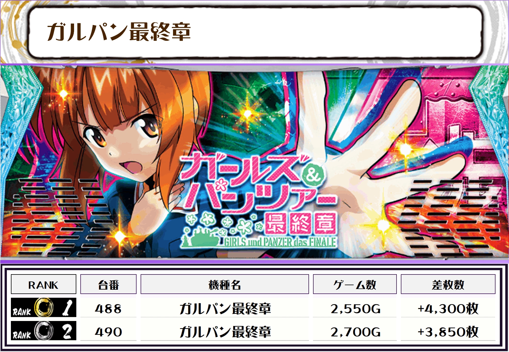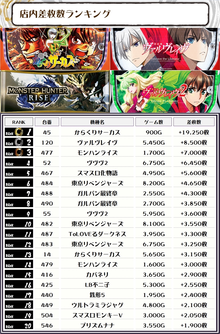 そして、全体の差枚ランキングがこちらっ🌟