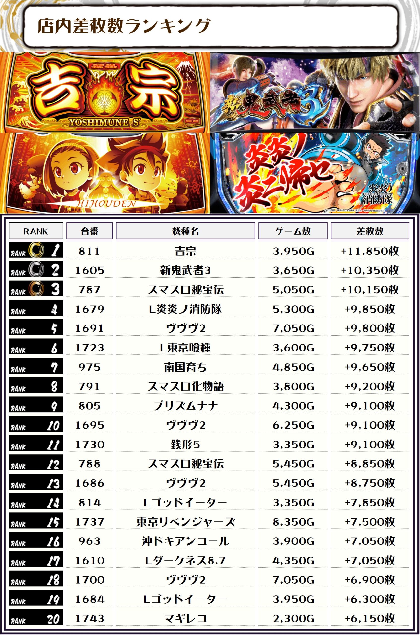 今回もしっかりと万枚3台、ランキングの20位でも6000枚オーバーです✨✨✨