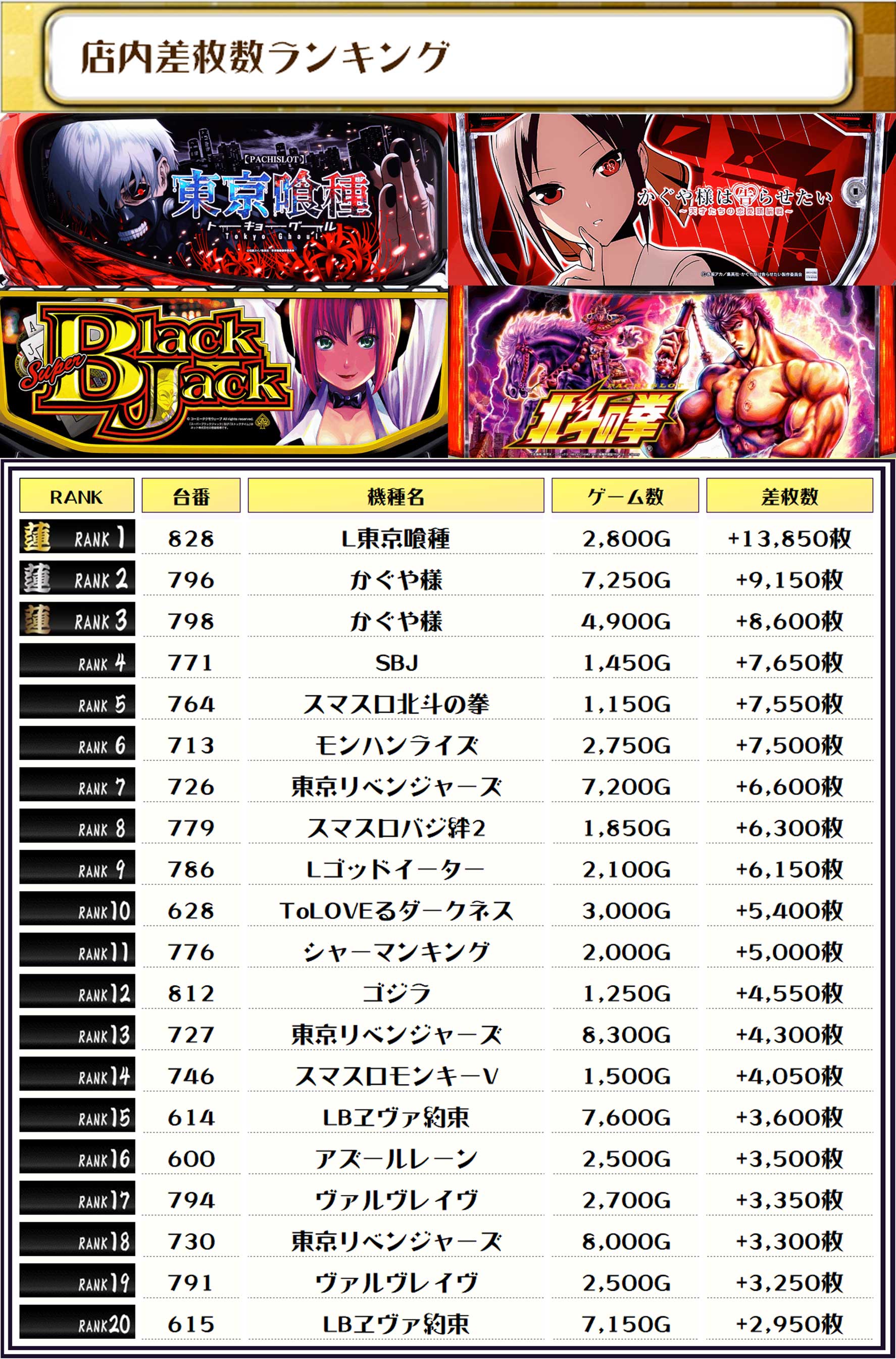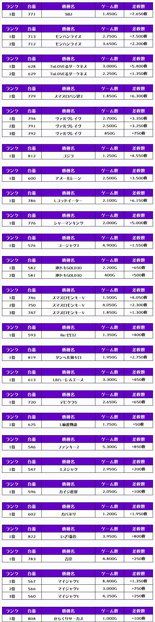 ということで、この日の店舗全体差枚数ランキングがこちら❗️