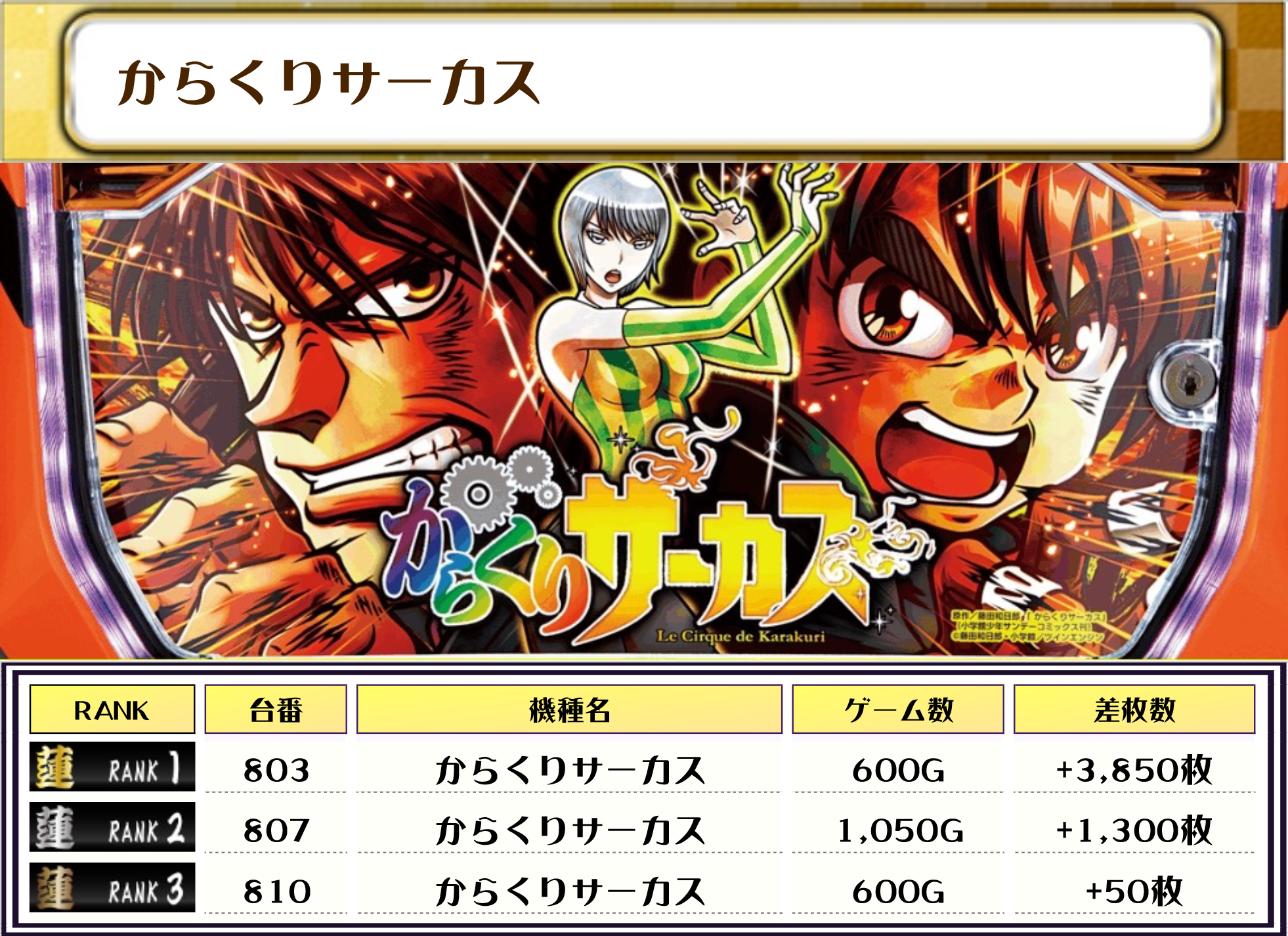 この日の店舗全体差枚数ランキングがこちらっ❗️