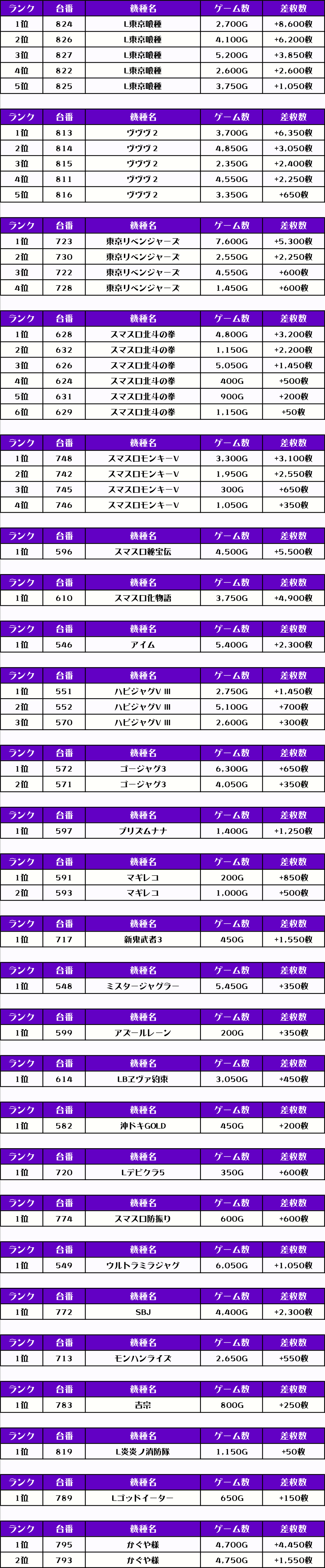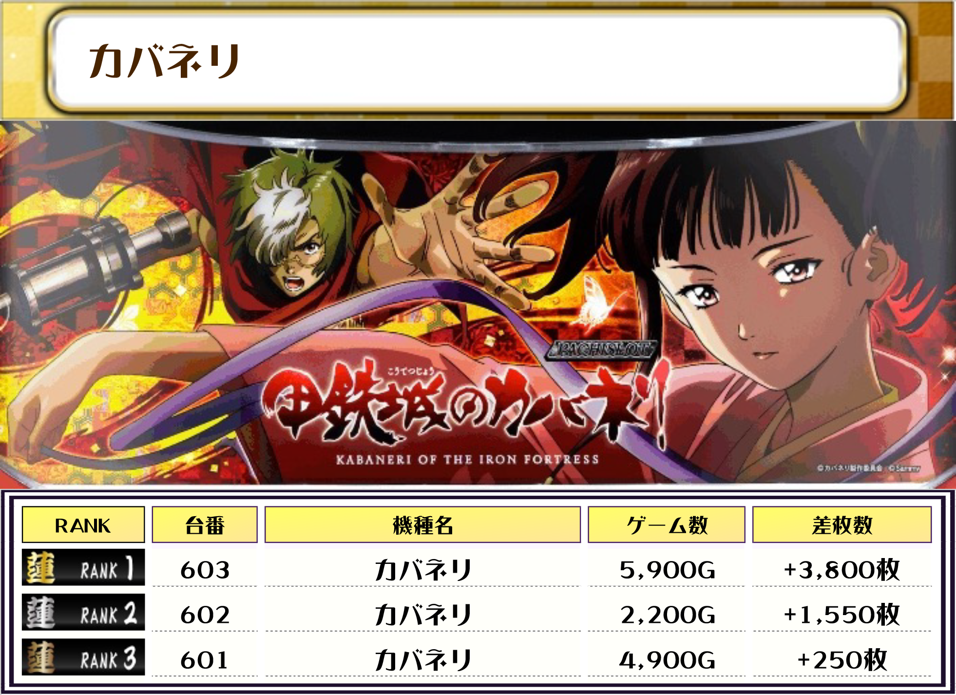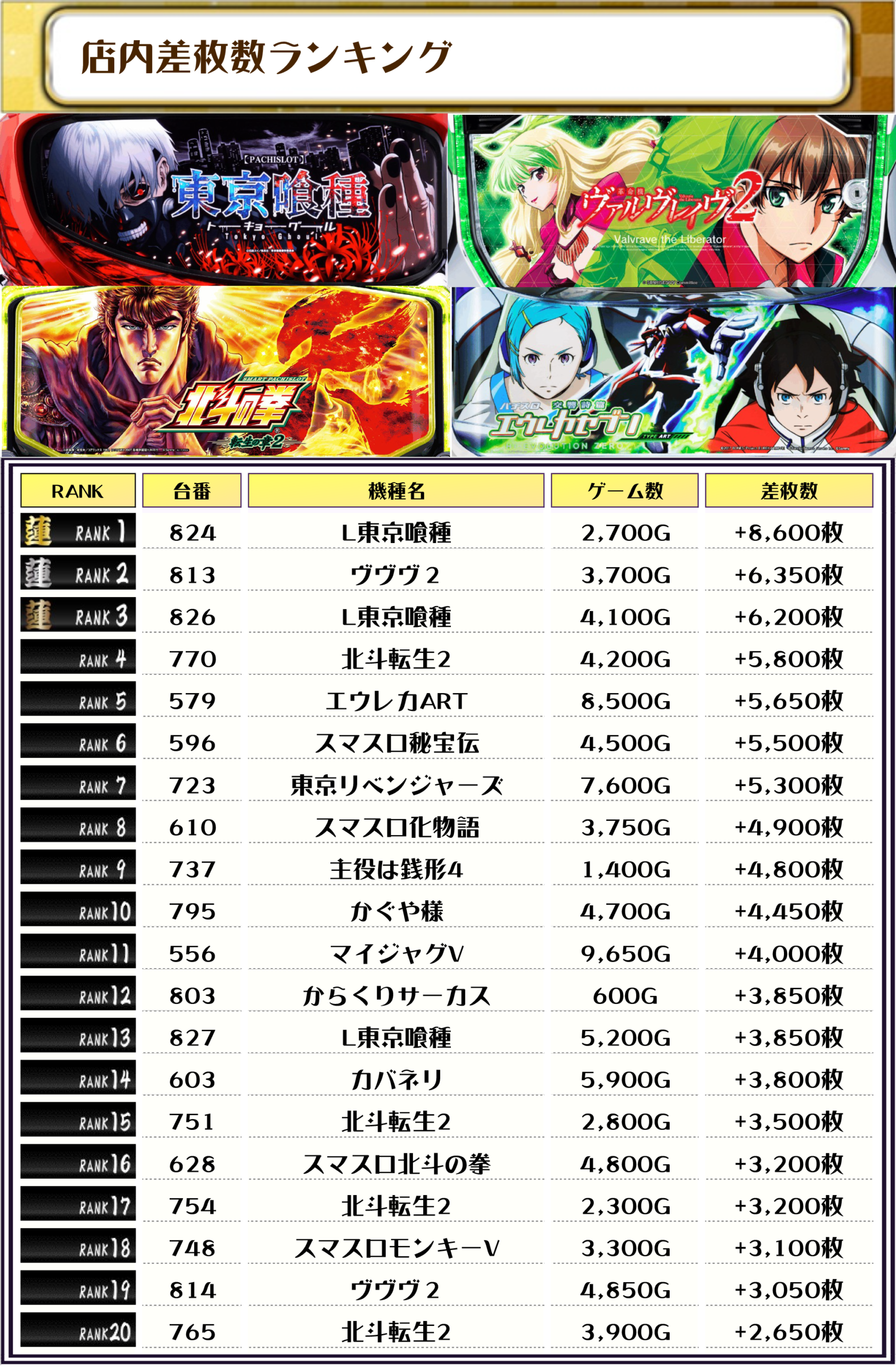 2位には【ヴヴヴ2・813番台】の+6,350枚、そして3位には【L東京喰種・826番台】の+6,200枚がランクインっ🏆🏆🏆🏆