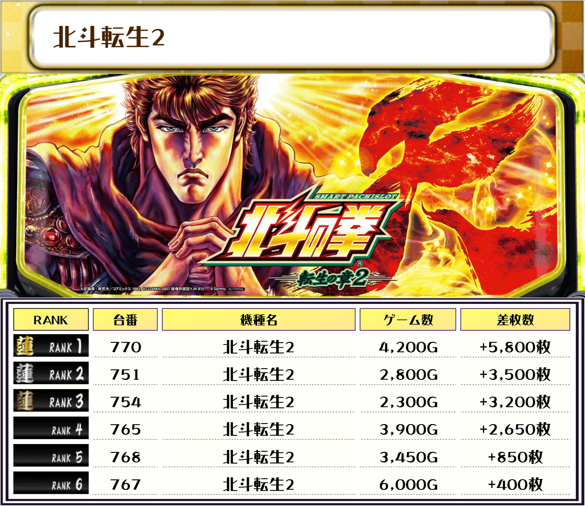 北斗転生2はランキングに複数入賞していて、シマ全体盛り上がっていましたね〜🔥