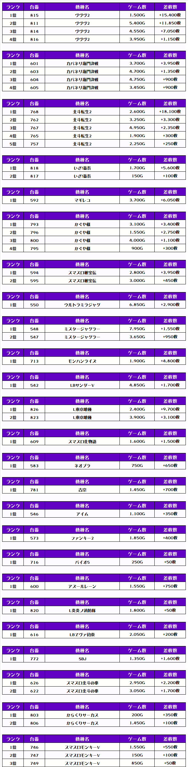 2位には【ヴヴヴ2・815番台】の+15,400枚、そして3位には【ヴヴヴ2・811番台】の+11,850枚がランクインっ🏆🏆🏆🏆