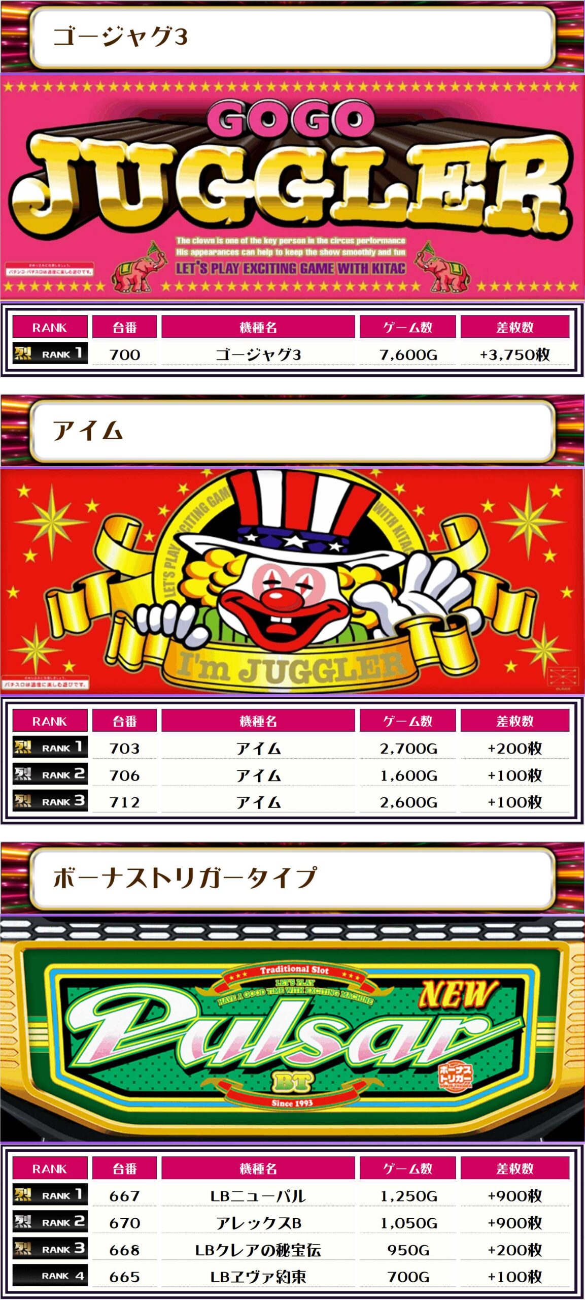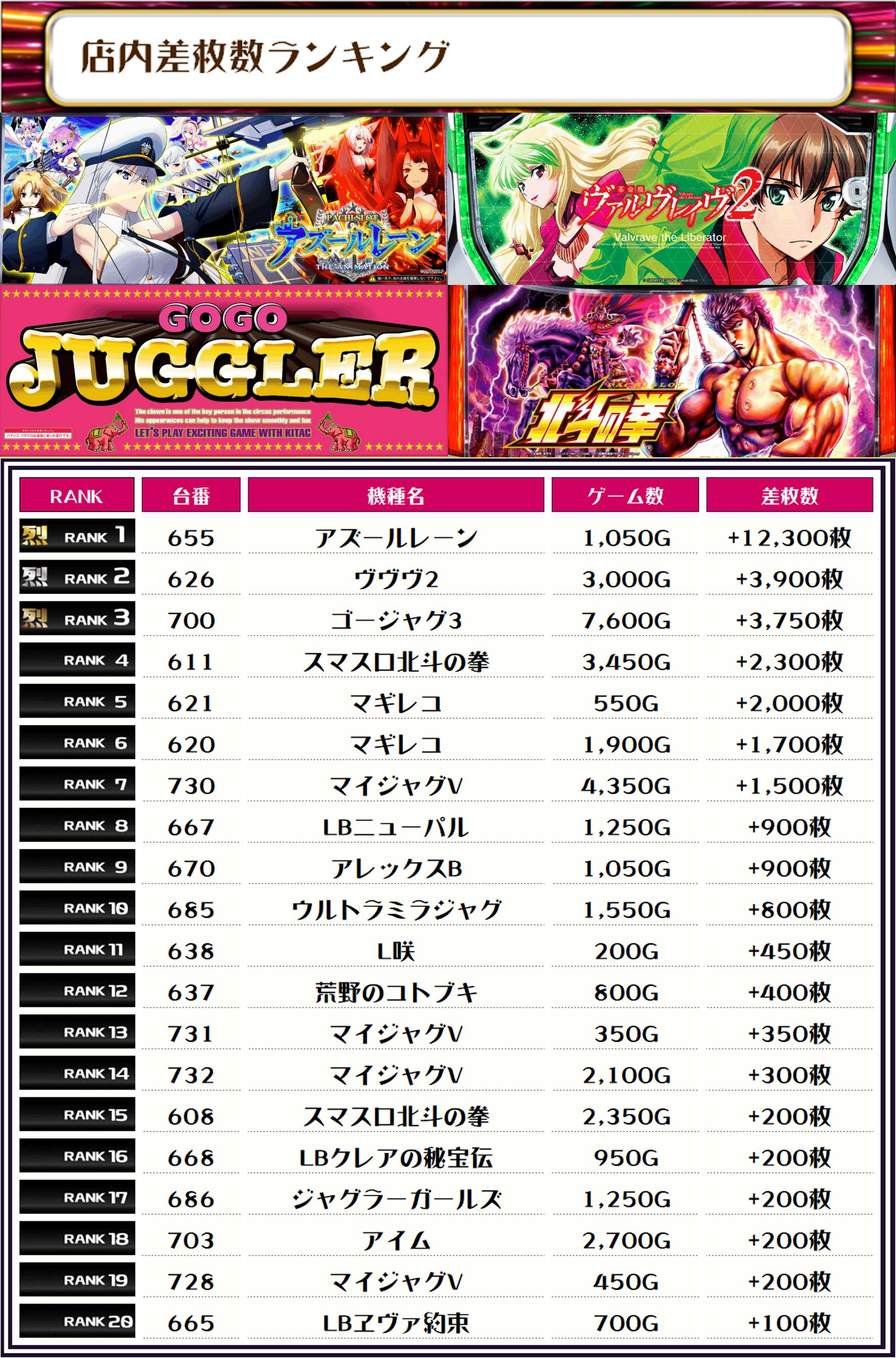 それでは、機種別差枚ランキングをチェックしましょう✨