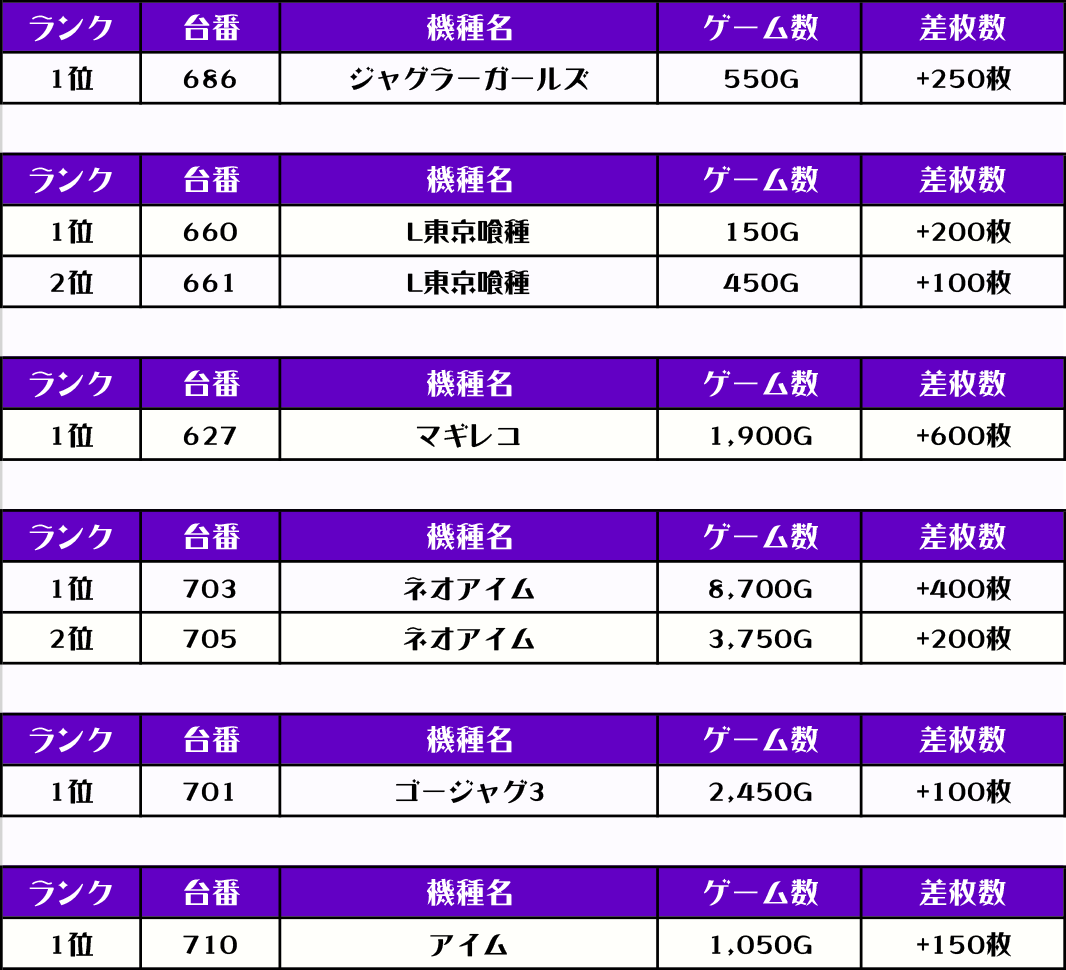 それでは、機種別差枚ランキングをチェックしましょう✨