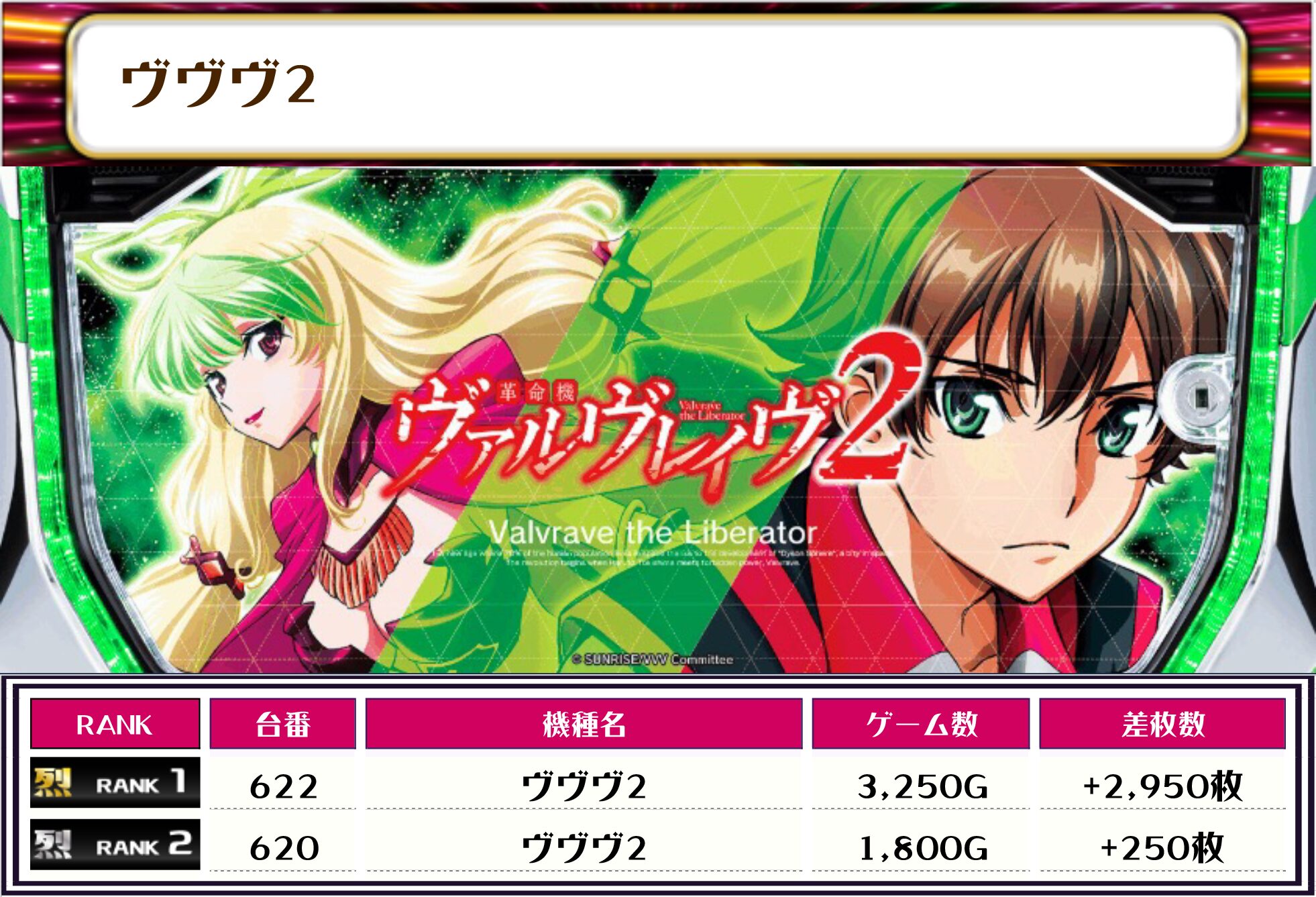 2位には【荒野のコトブキ・650番台】の+3,350枚、そして3位には【ヴヴヴ2・622番台】の+2,950枚がランクインしましたっ❤️