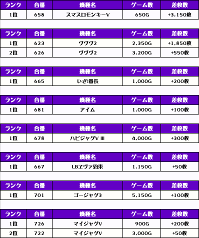 それでは、機種別差枚ランキングをチェックしましょう✨