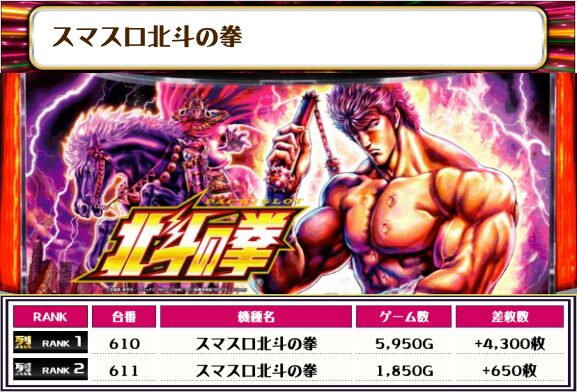 2位には【L東京喰種・662番台】の+6,450枚、そして3位には【スマスロ北斗の拳・610番台】の+4,300枚がランクインしましたっ❤️