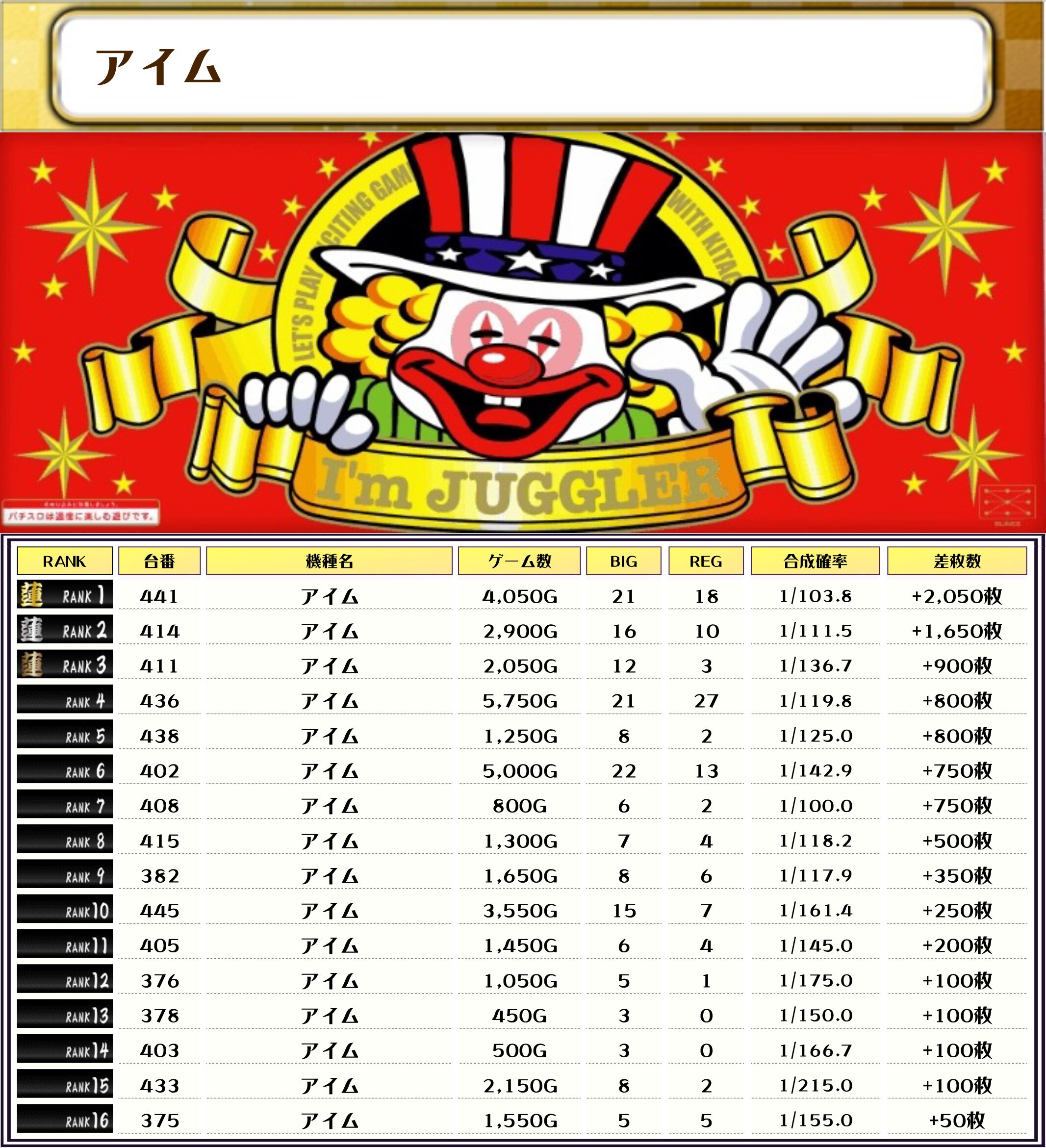 さらにアイムは5台よりもさらにズラッと優秀台が並んでいた模様😲