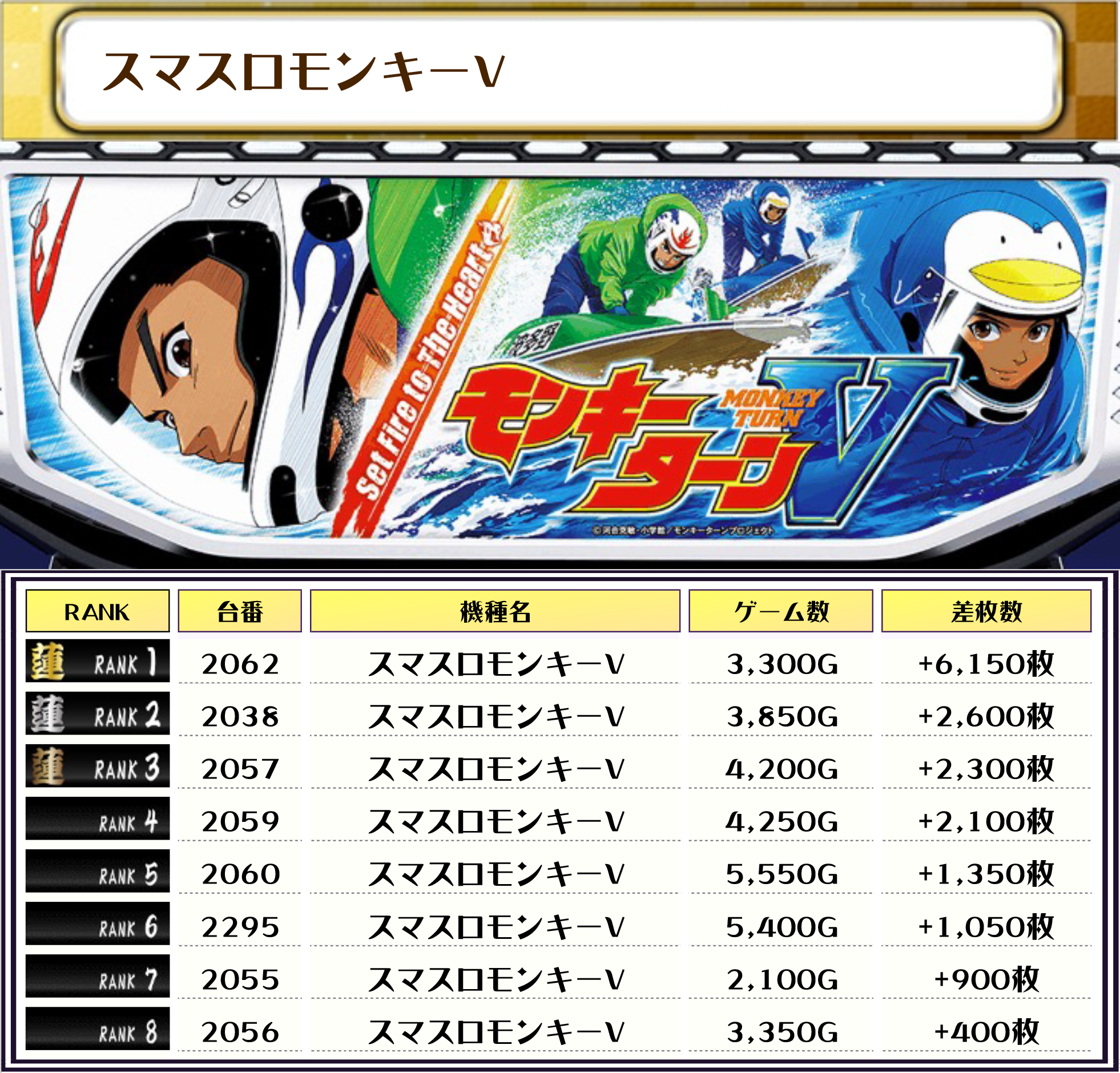スマスロモンキーVは差枚ランキングの1位にもなりました👏