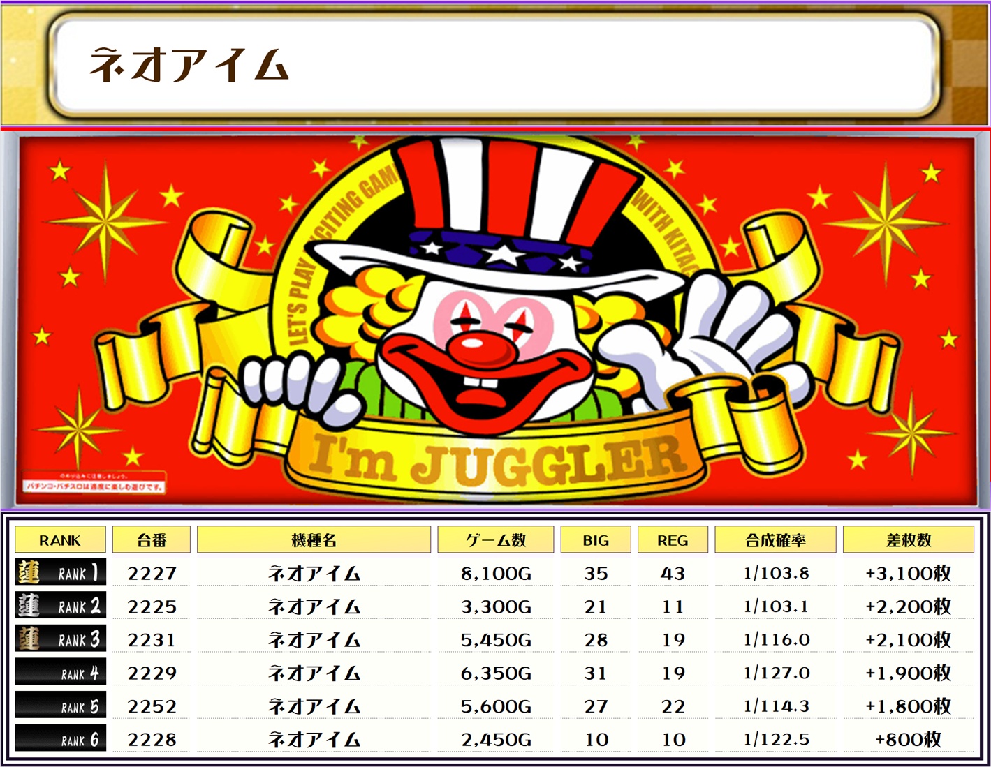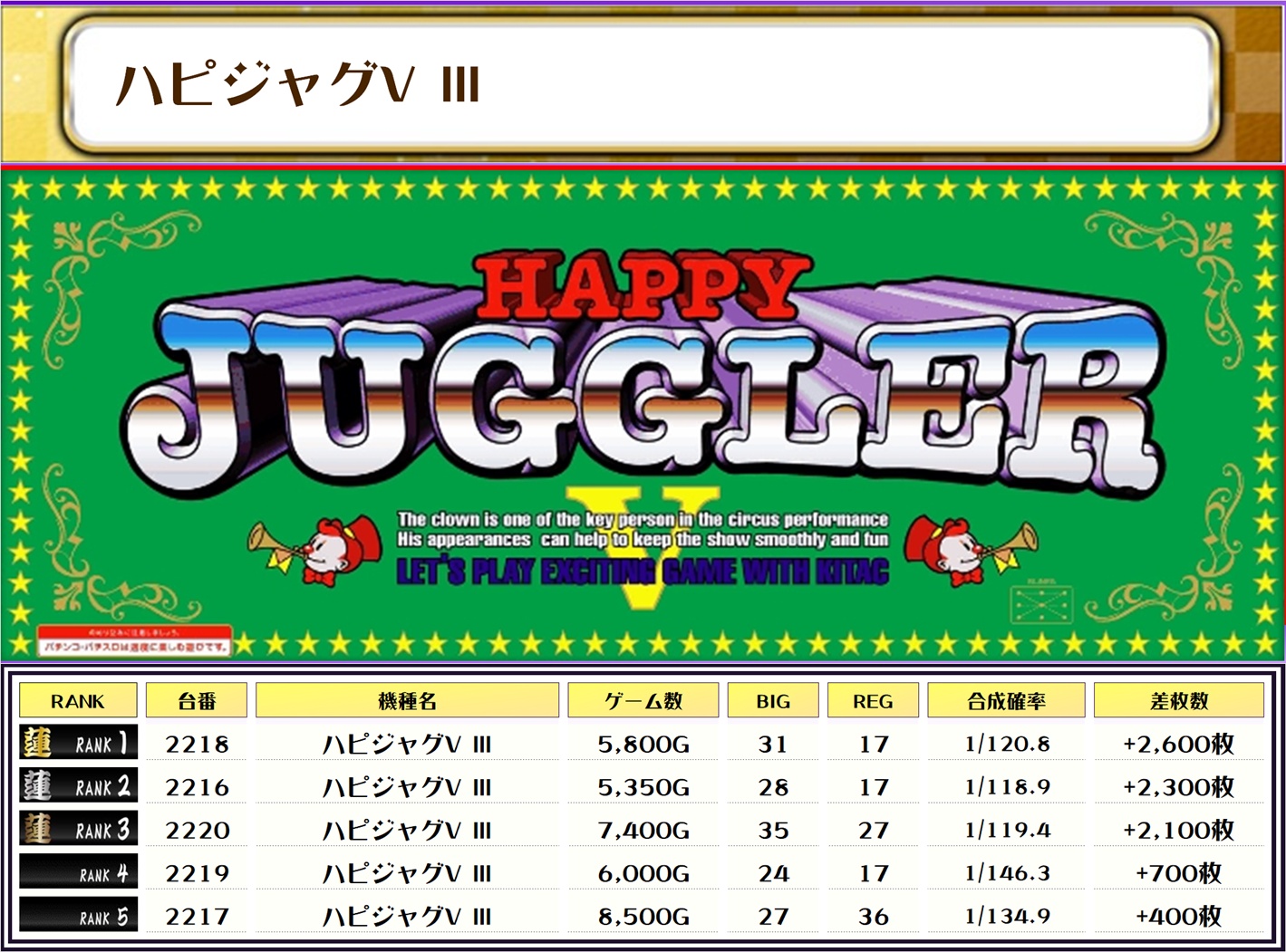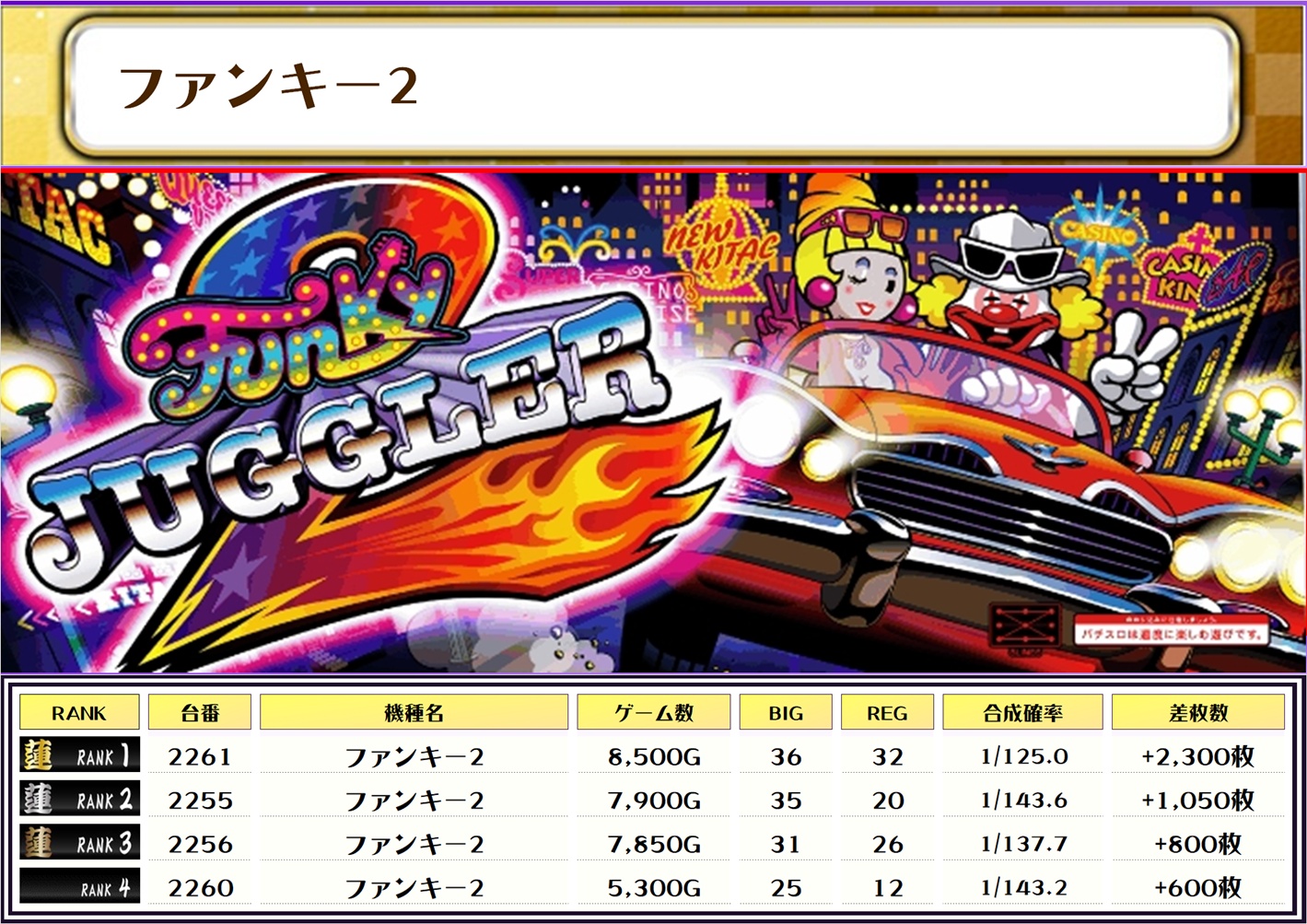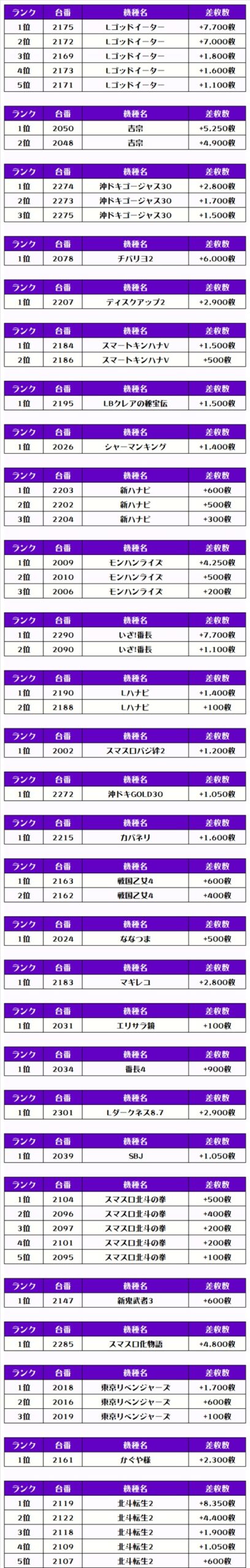 それでは早速、機種別差枚ランキングをチェックしましょう❗️