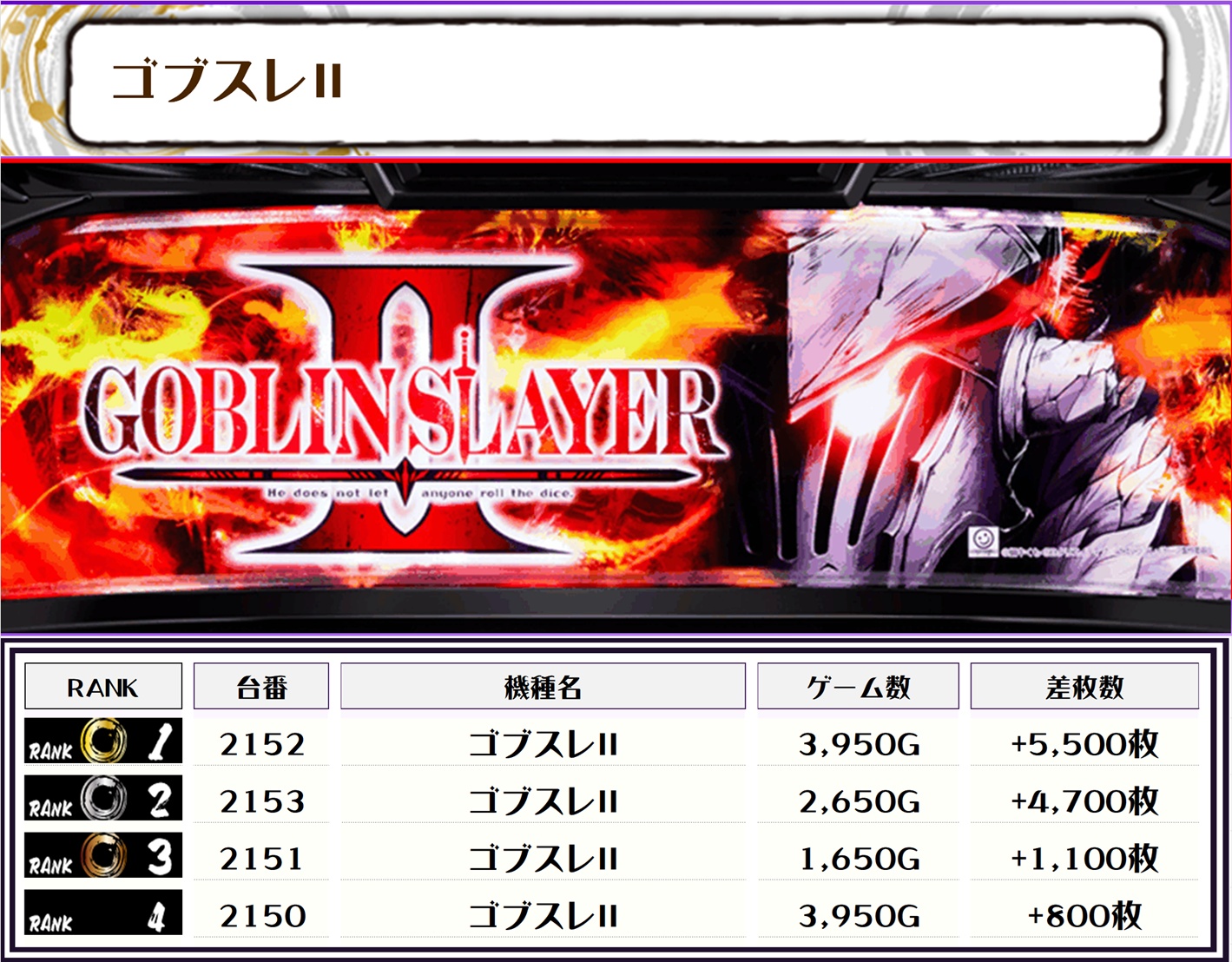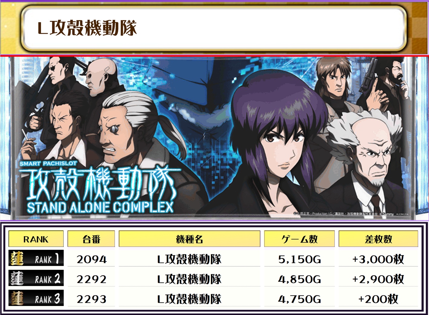 特に攻殻機動隊ゴブスレ2は全台差枚数プラスと好調でした👀