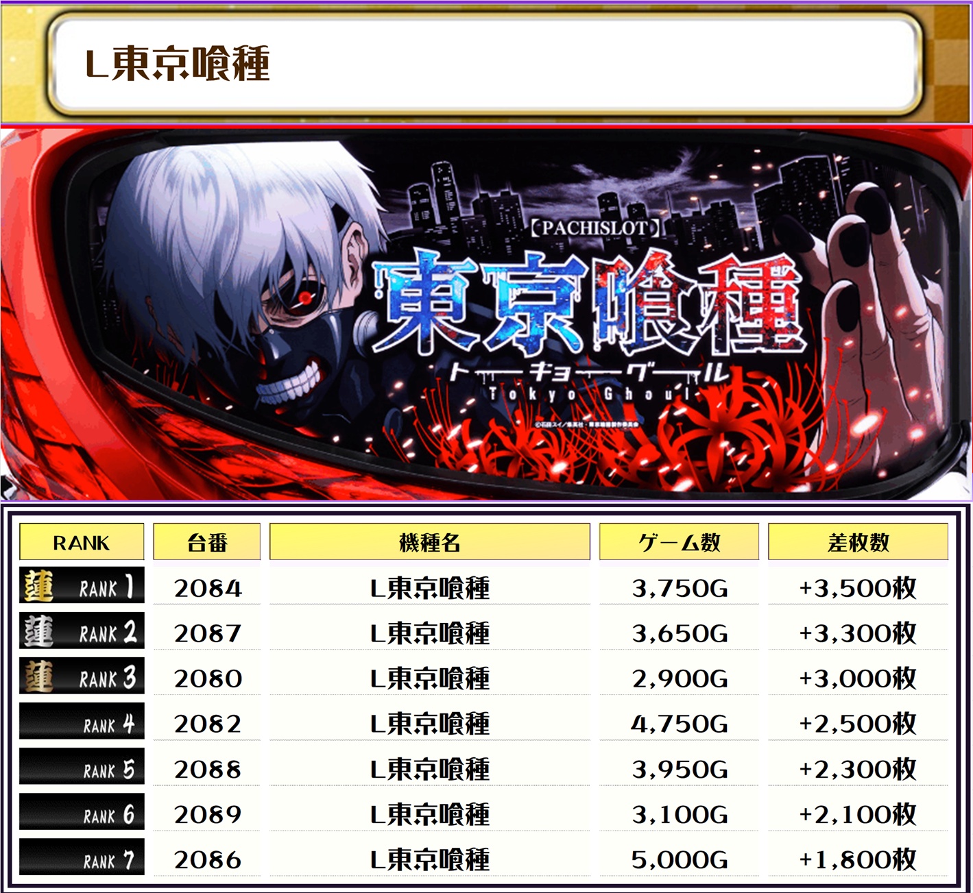2位にはLゴッドイーター・2175番台【いざ!番長・2290番台】の+7,700枚がランクインですっ❗️っ🏆🏆🏆🏆