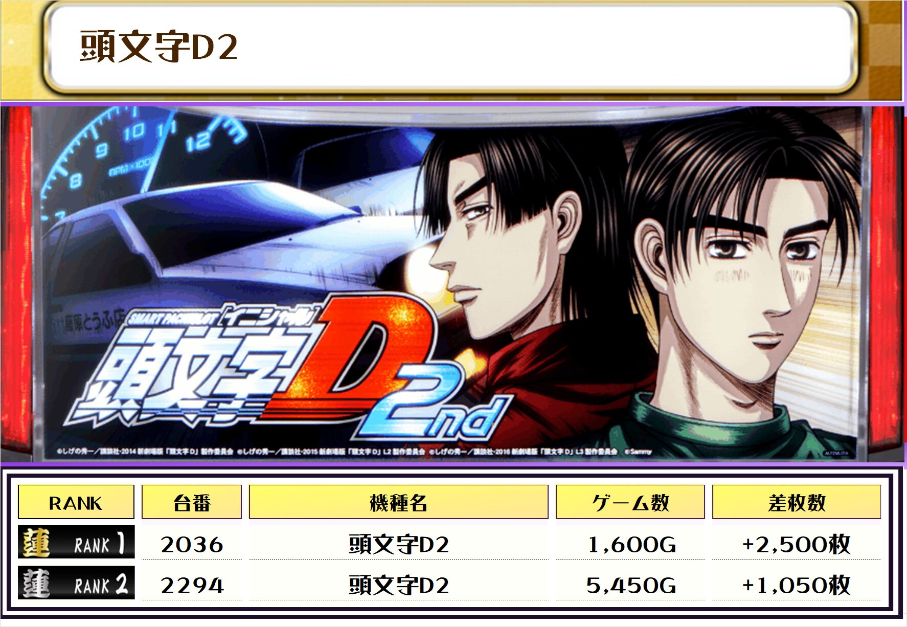 特にL攻殻機動隊とゴージャグ3と頭文字D2は素晴らしい勝率でしたね👀