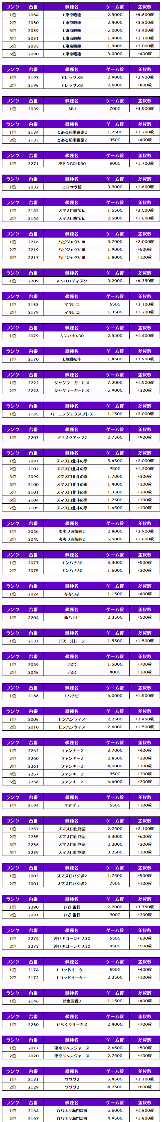 それでは早速、機種別差枚ランキングをチェックしましょう❗️
