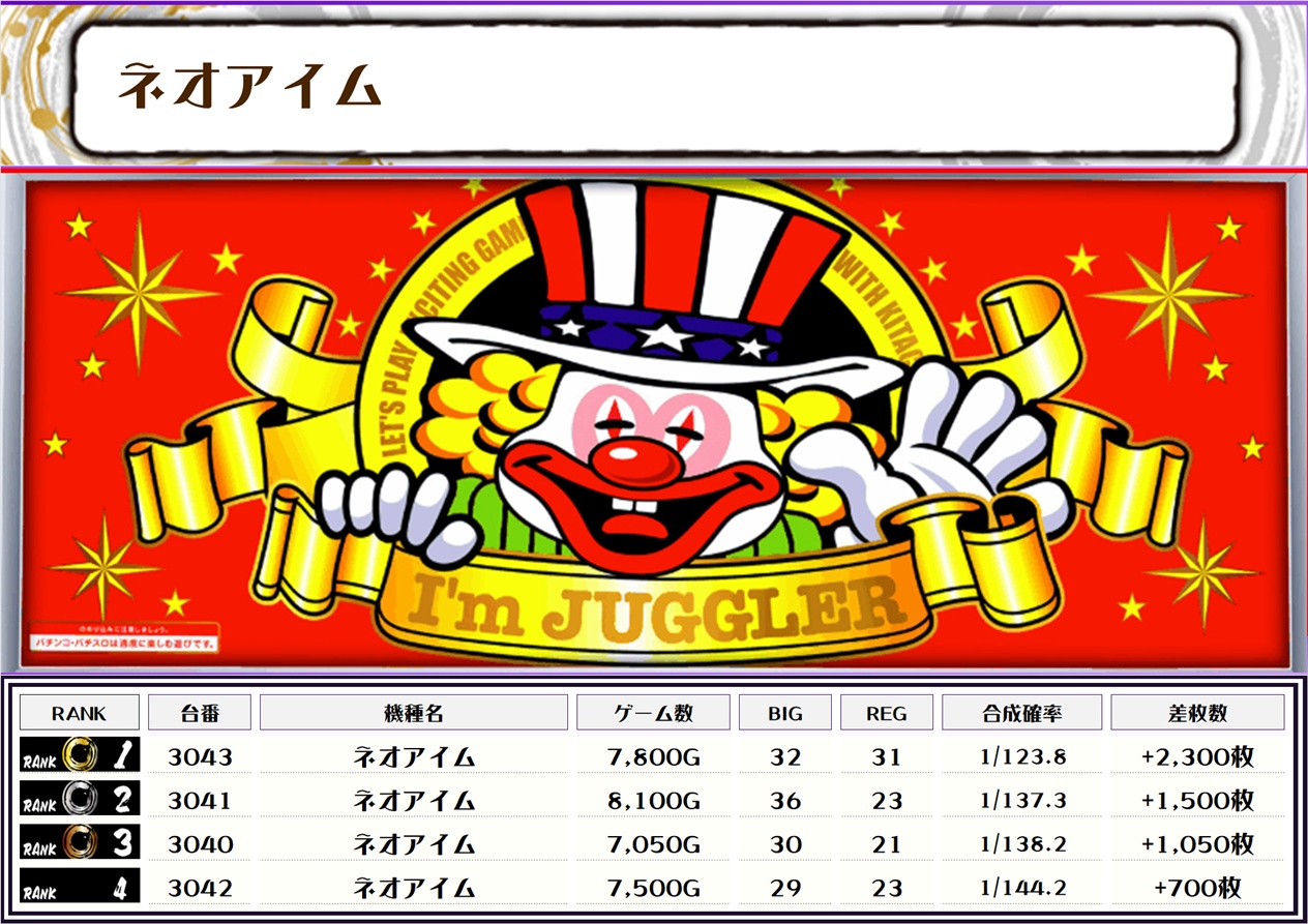 最後に、この日の店内差枚ランキングをご覧ください❗️