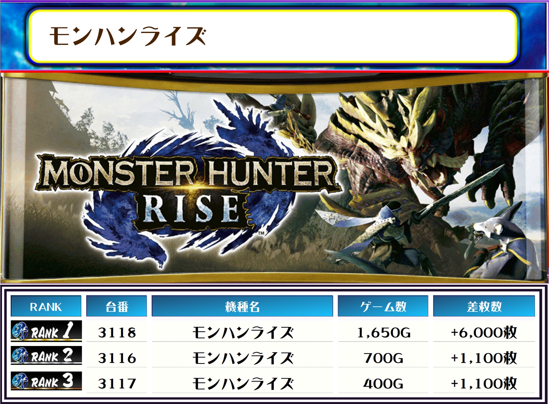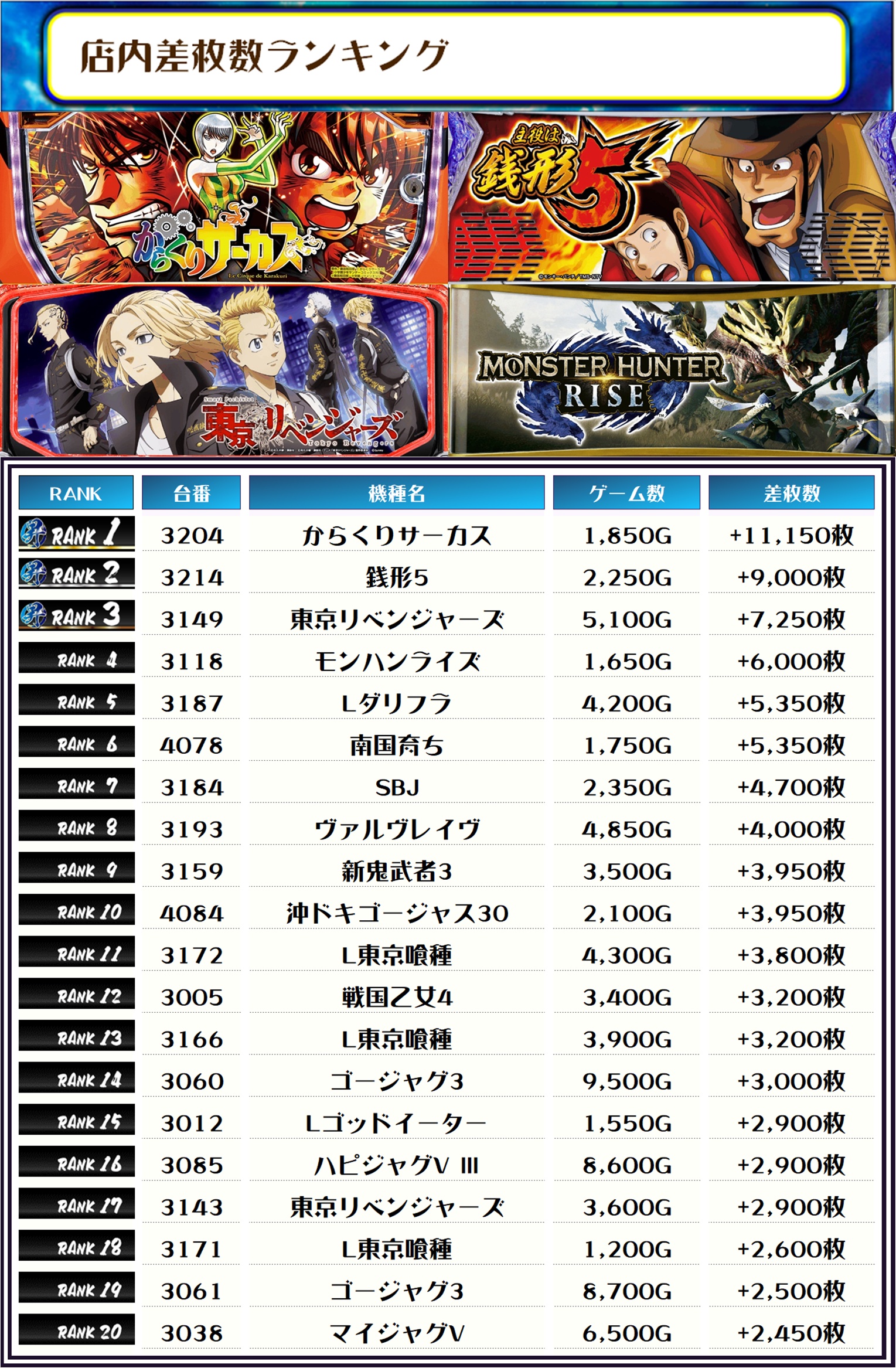 それでは、この日の【機種別差枚ランキング】を見ていきましょう❗️