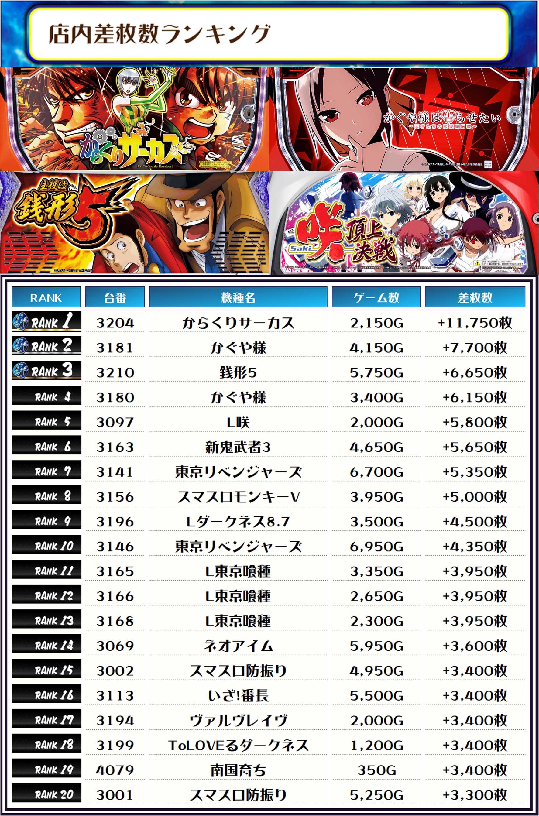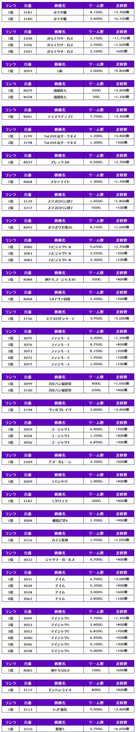 続く2位には【かぐや様・3181番台】の+7,700枚、そして3位には【銭形5・3210番台】の+6,650枚がランクインっ🏆🏆🏆🏆