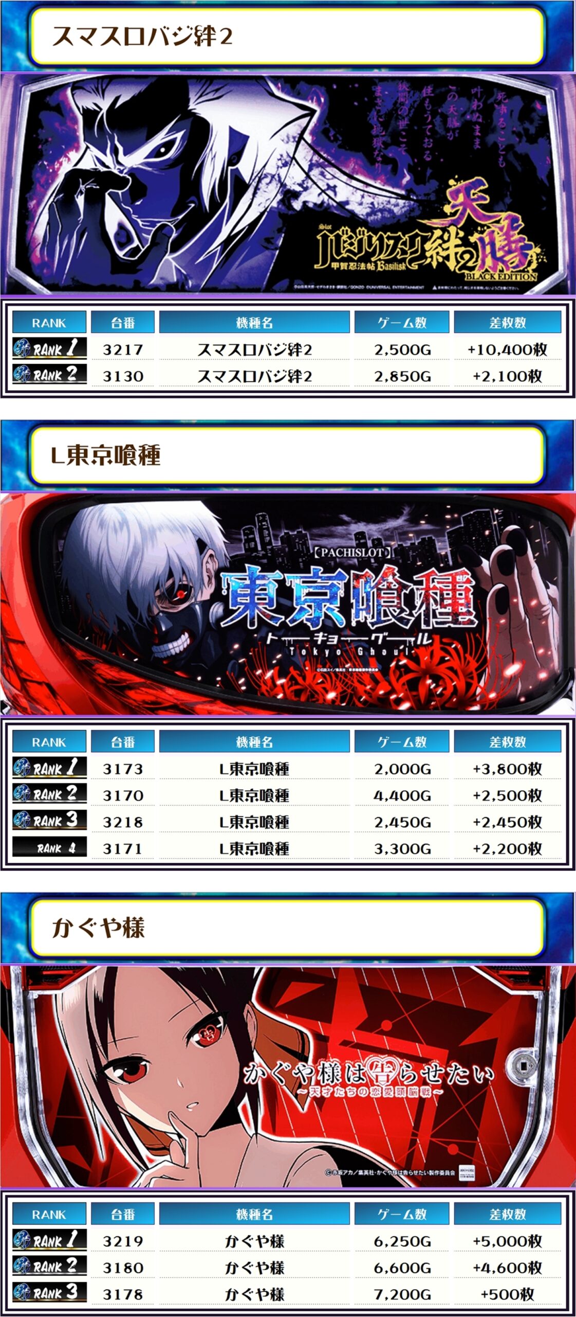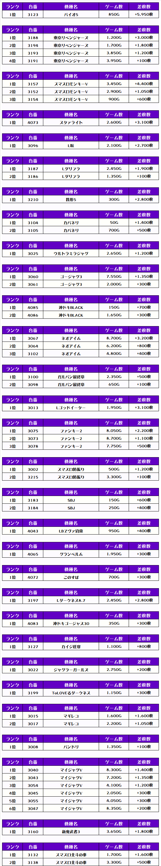 続く2位には【スマスロバジ絆2・3217番台】の+10,400枚、そして3位には新台の【ヴヴヴ2・3147番台】の+8,000枚がランクインっ🏆🏆🏆🏆