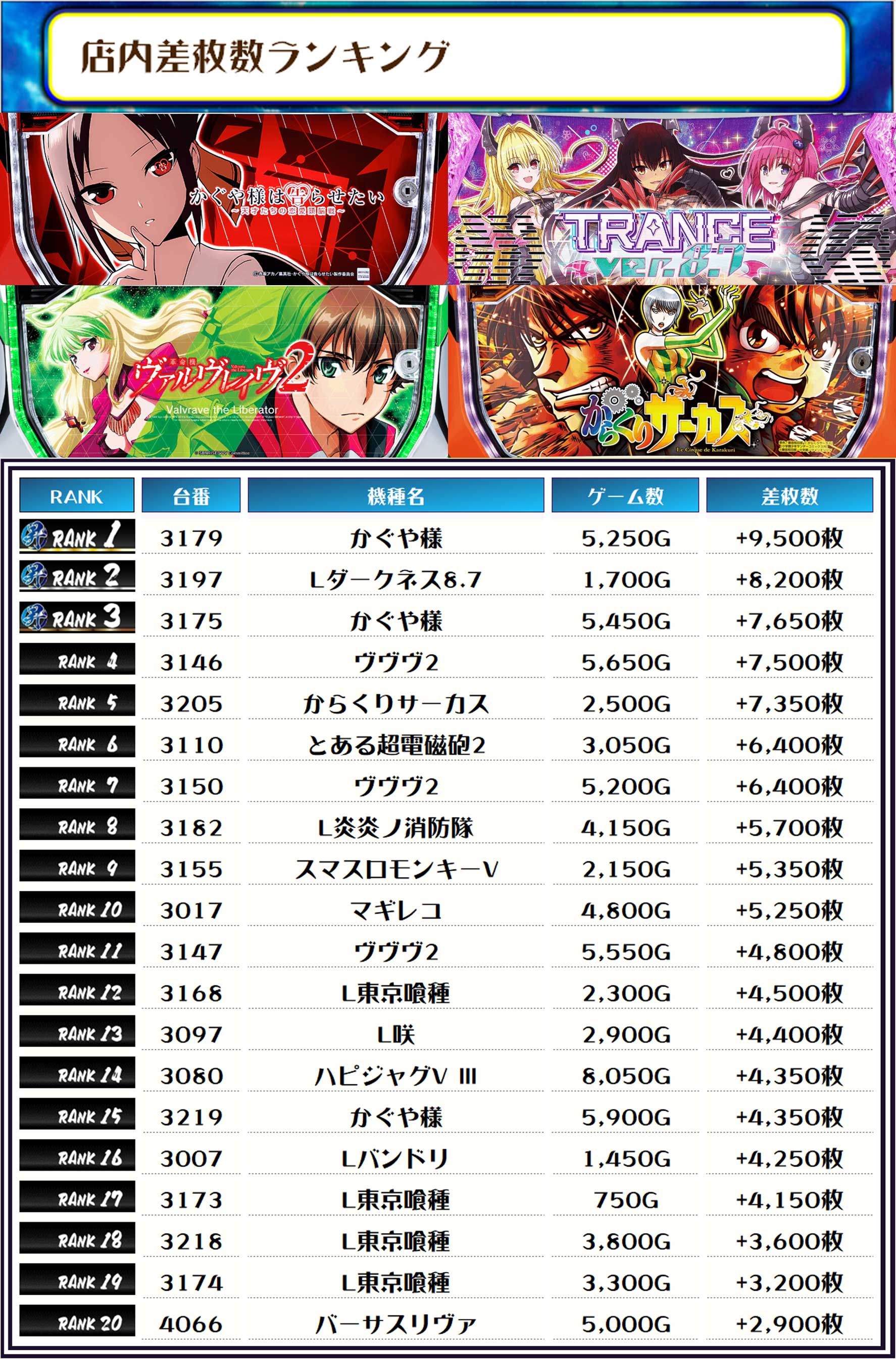 それでは、この日の【機種別差枚ランキング】を見ていきましょう❗️