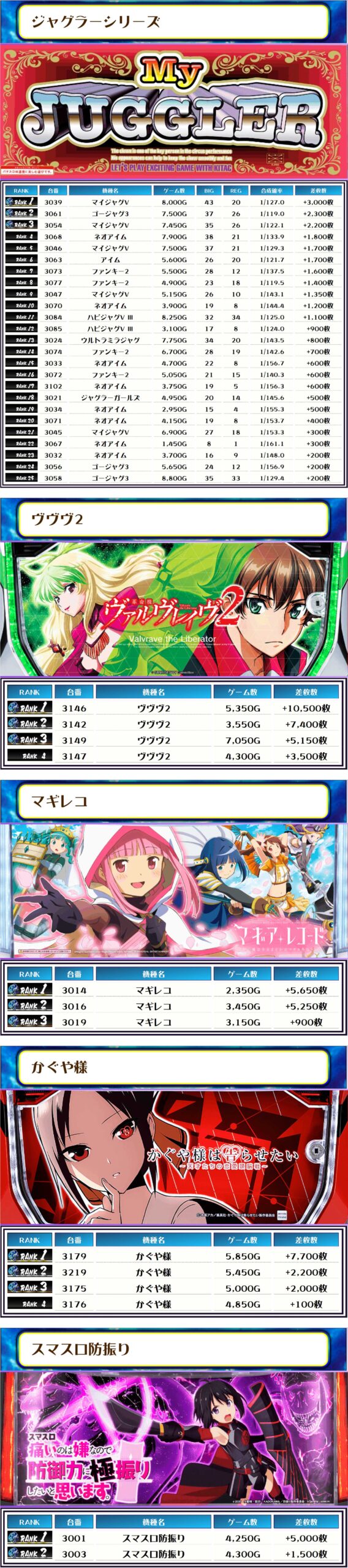 それでは、この日の【機種別差枚ランキング】を見ていきましょう❗️
