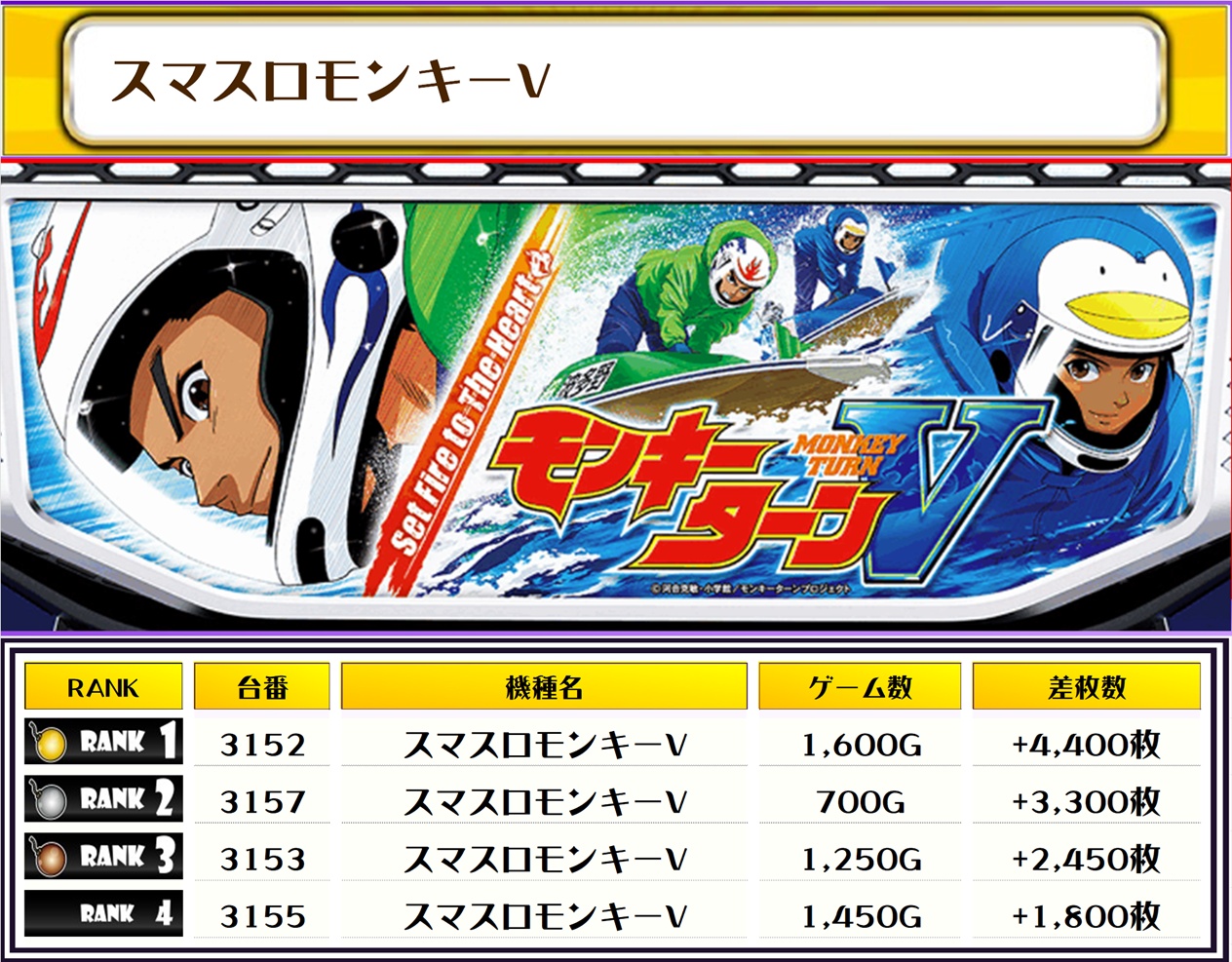 続く2位には【ヴヴヴ2・3143番台】の+6,000枚、そして3位には【スマスロ北斗の拳・3132番台】の+5,800枚がランクインっ🏆🏆🏆🏆