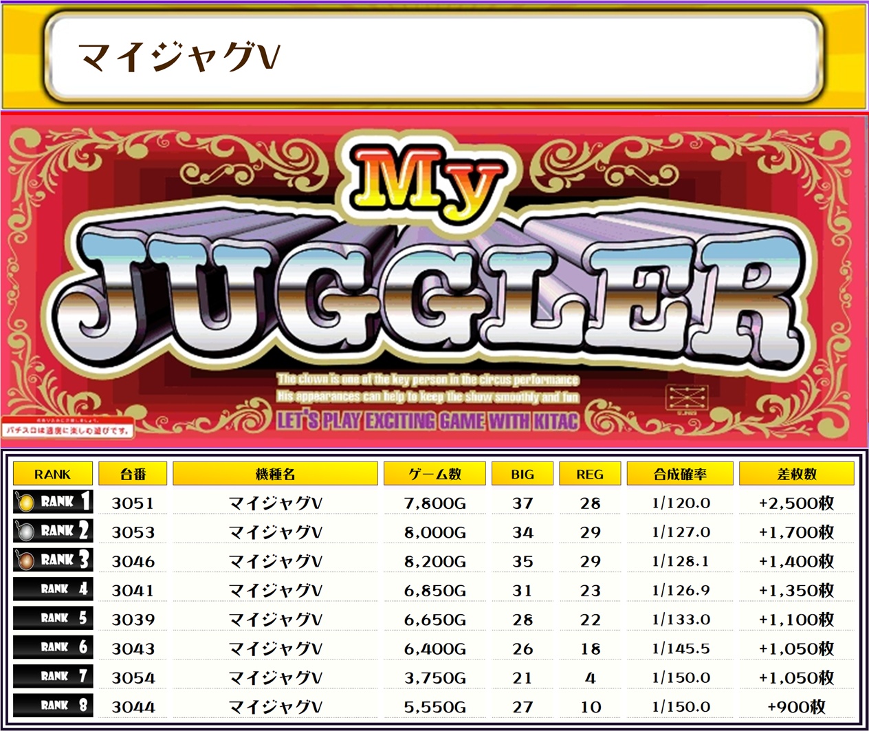 ジャグで勝率が60%を超えているなら優秀台だった可能性が高そうだな📝