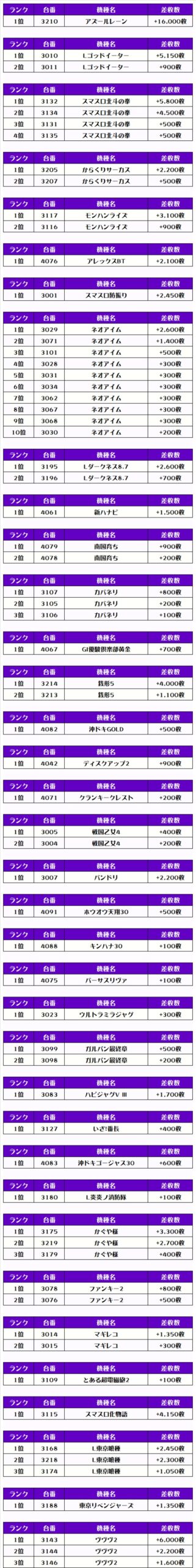 そして、全体の差枚ランキングです🌟