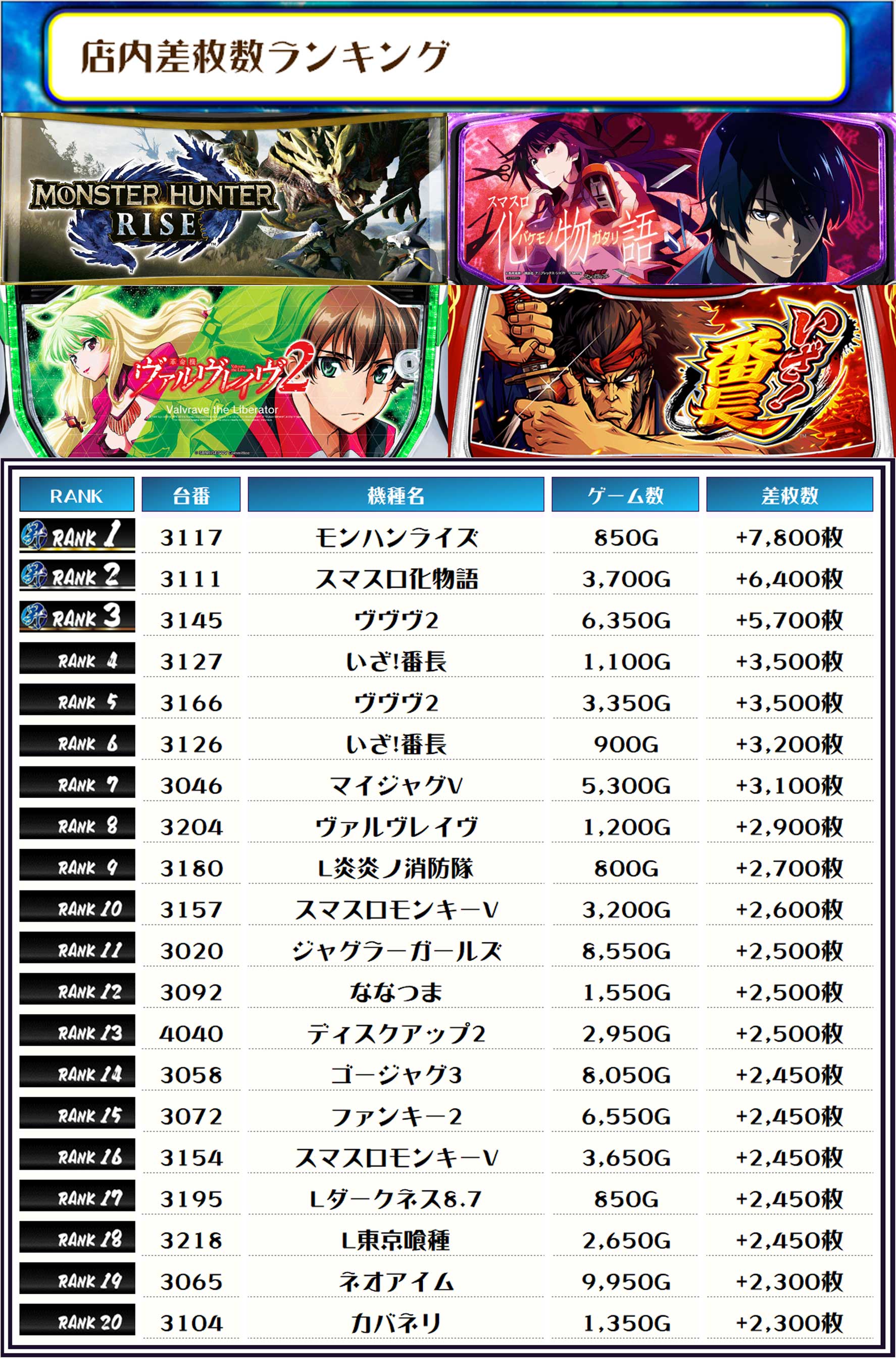 それでは、この日の【機種別差枚ランキング】を見ていきましょう❗️