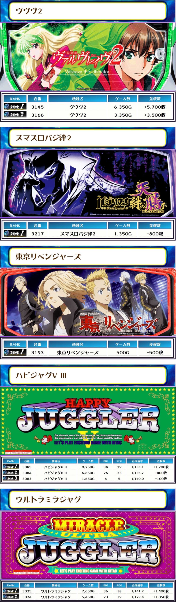 今回ピックアップしたのは稼働が高かった機種でして、優秀台が多かったと思われるのですが…ちょっと不発気味かな😢