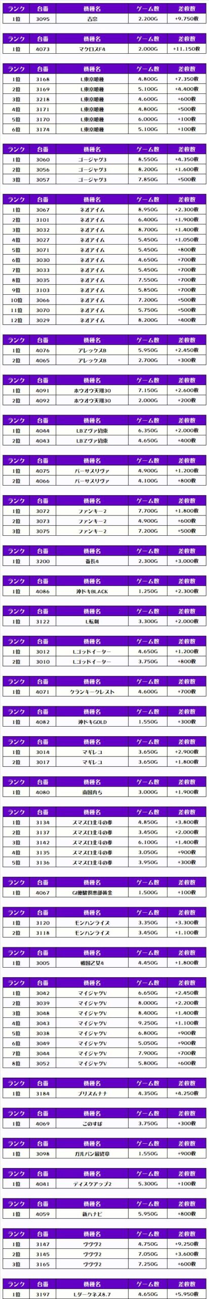 また、ピックアップしたほかの機種も稼働が高かったので、優秀台が多かったのだろう💪