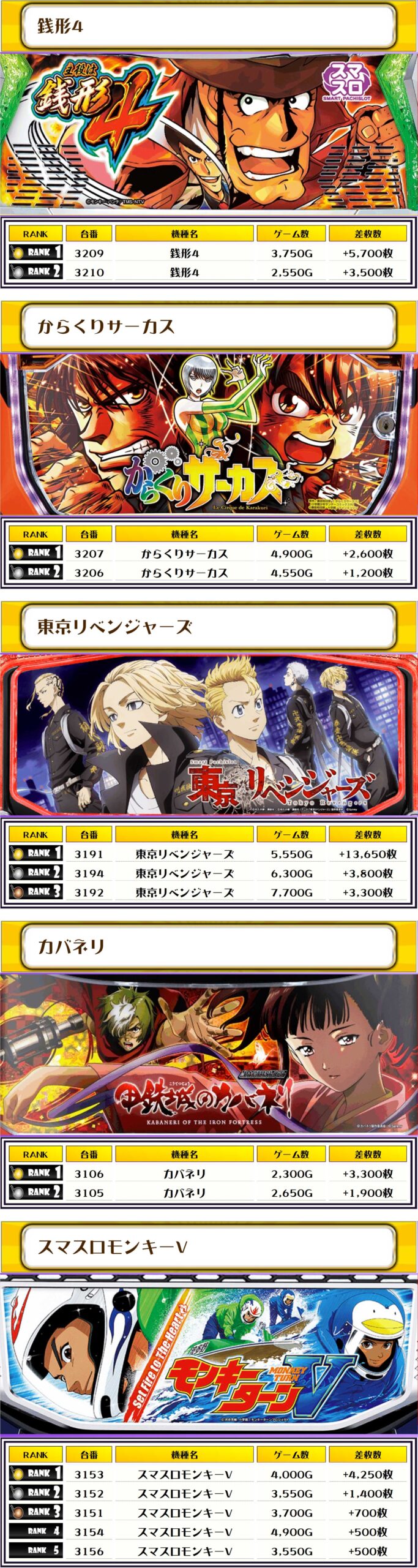 それでは、この日の【機種別差枚ランキング】を見ていきましょう❗️