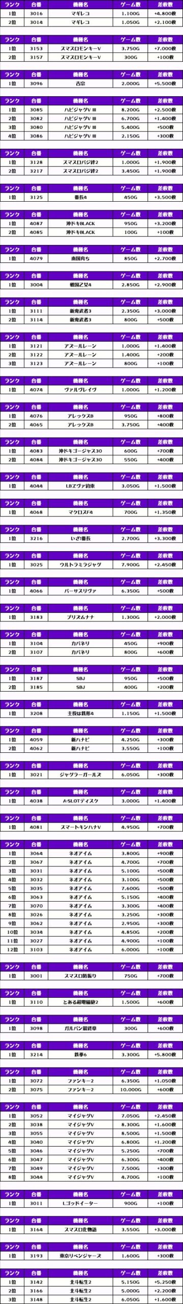 それでは、この日の【機種別差枚ランキング】を見ていきましょう❗️