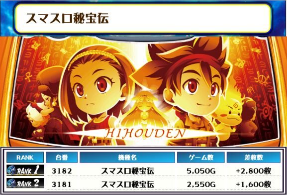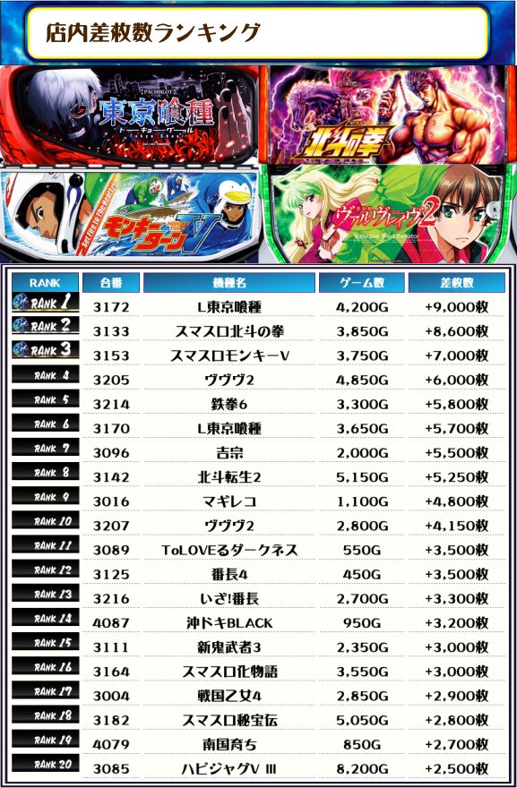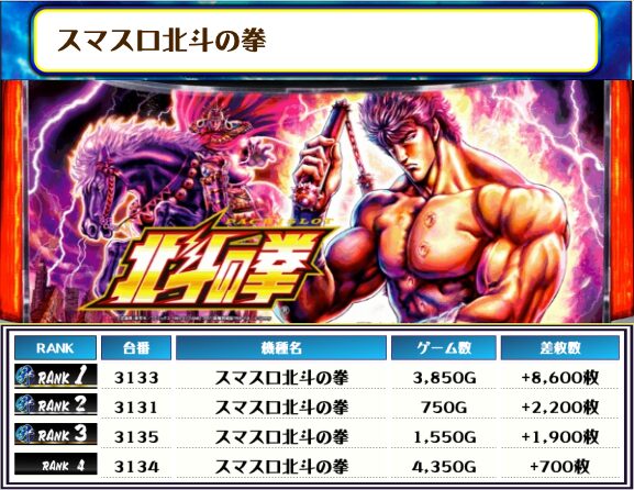 2位には【スマスロ北斗の拳・3133番台】の+8,600枚、3位には【スマスロモンキーV・3153番台】の+7,000枚がランクインっ🏆🏆🏆🏆