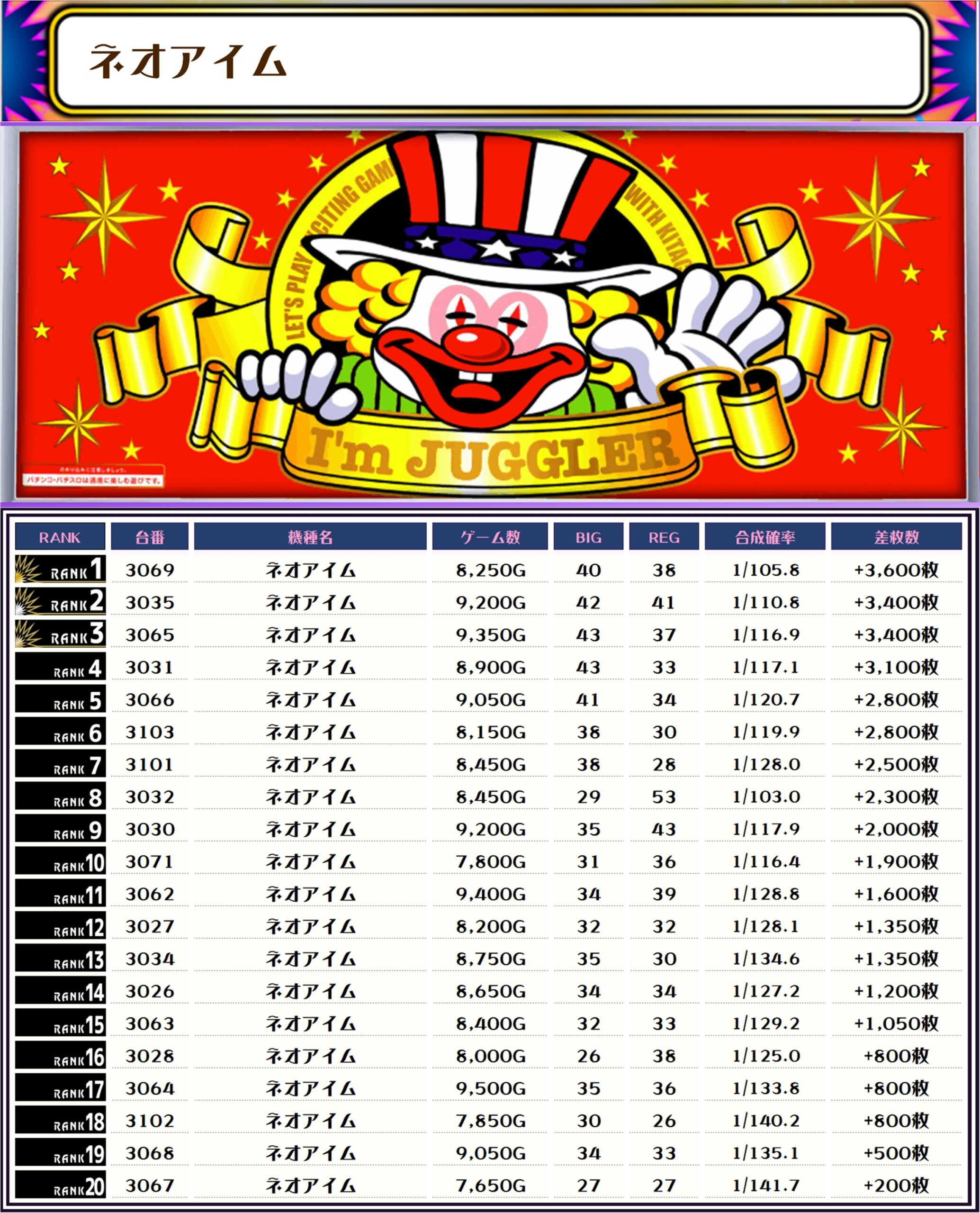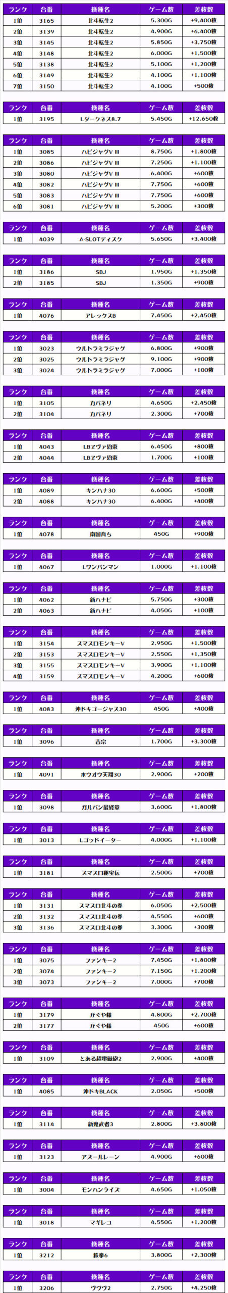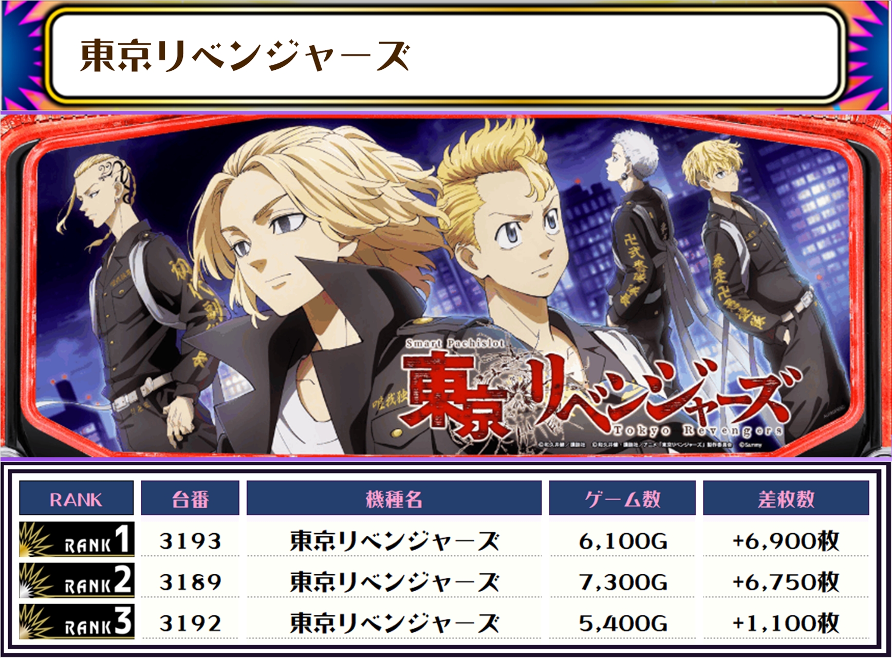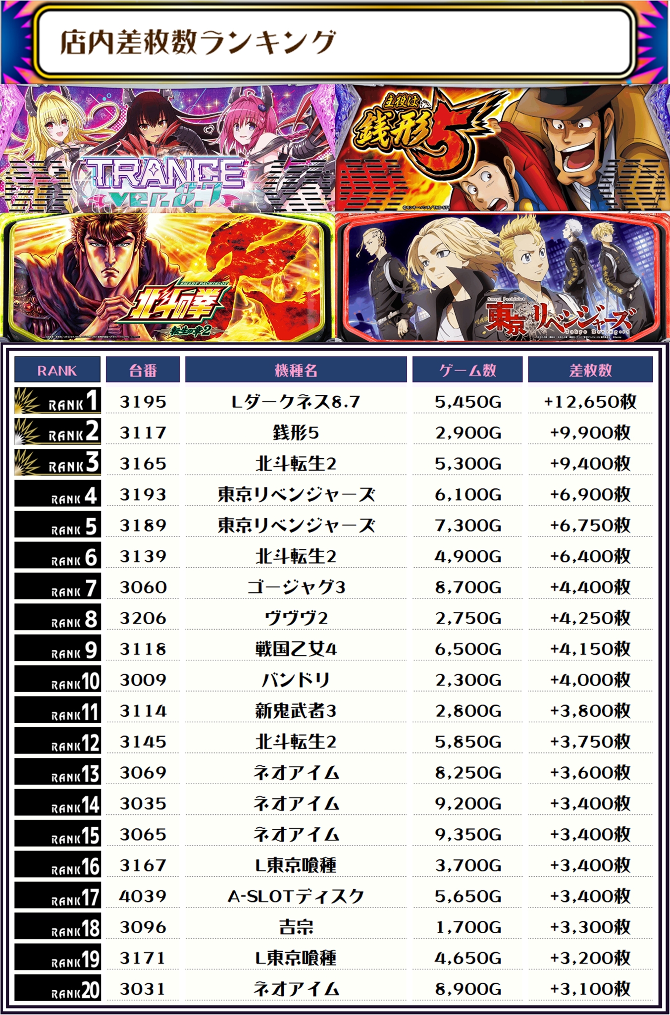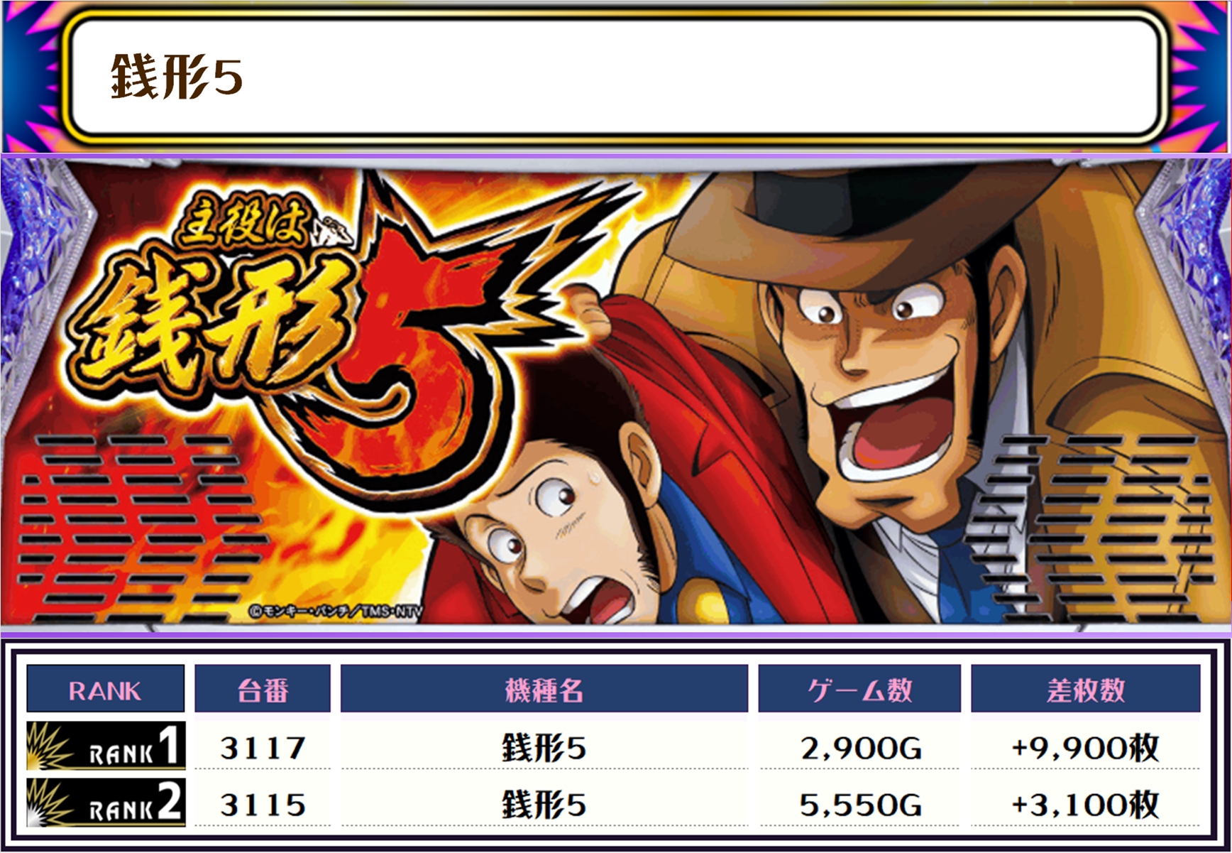 2位には【銭形5・3117番台】の+9,900枚、3位には【北斗転生2・3165番台】の+9,400枚がランクインっ🏆🏆🏆🏆