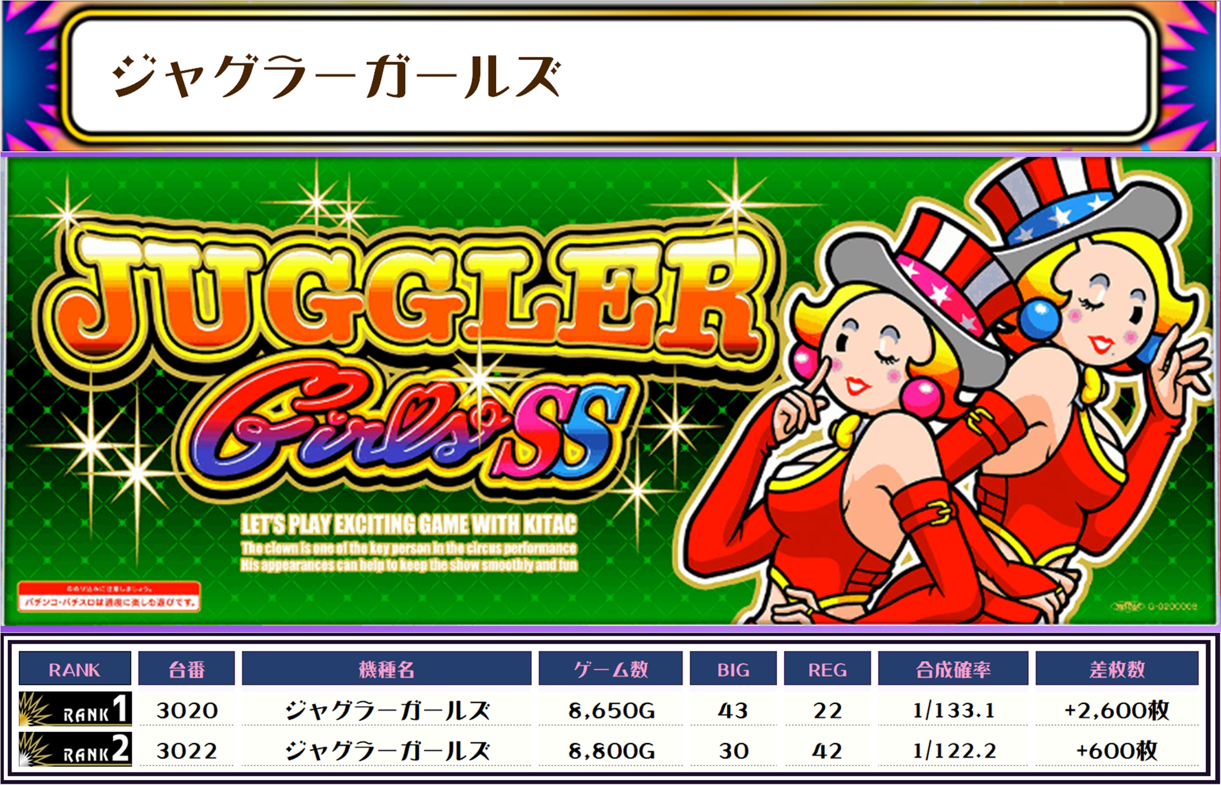 今回はジャグ系を多数ピックアップしました✨ これらの機種は稼働も勝率も高かったですね👀