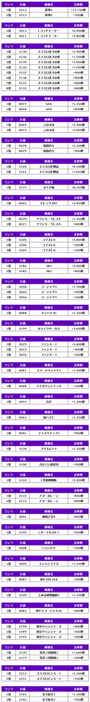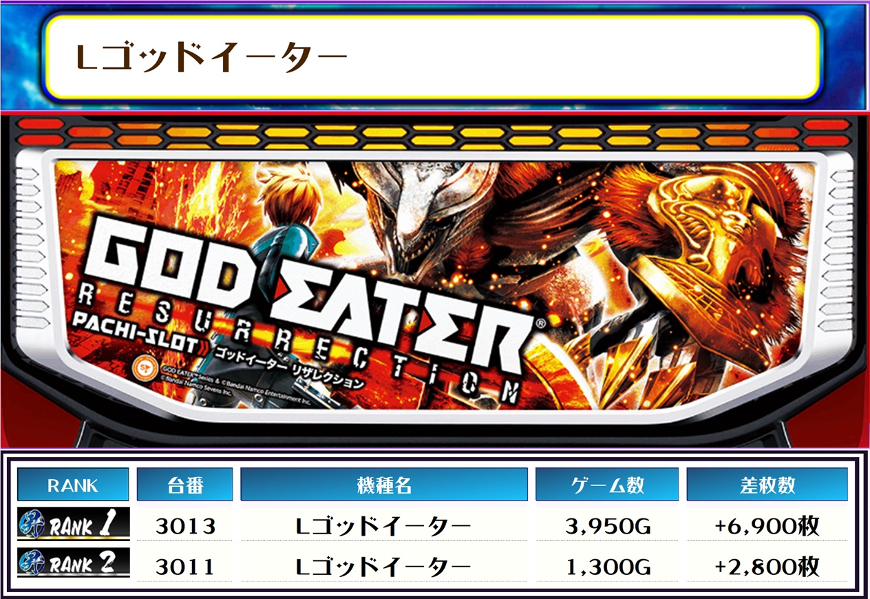 続く2位には【かぐや様・3177番台】の+8,150枚、そして3位には【Lゴッドイーター・3013番台】の+6,900枚がランクインっ🏆🏆🏆