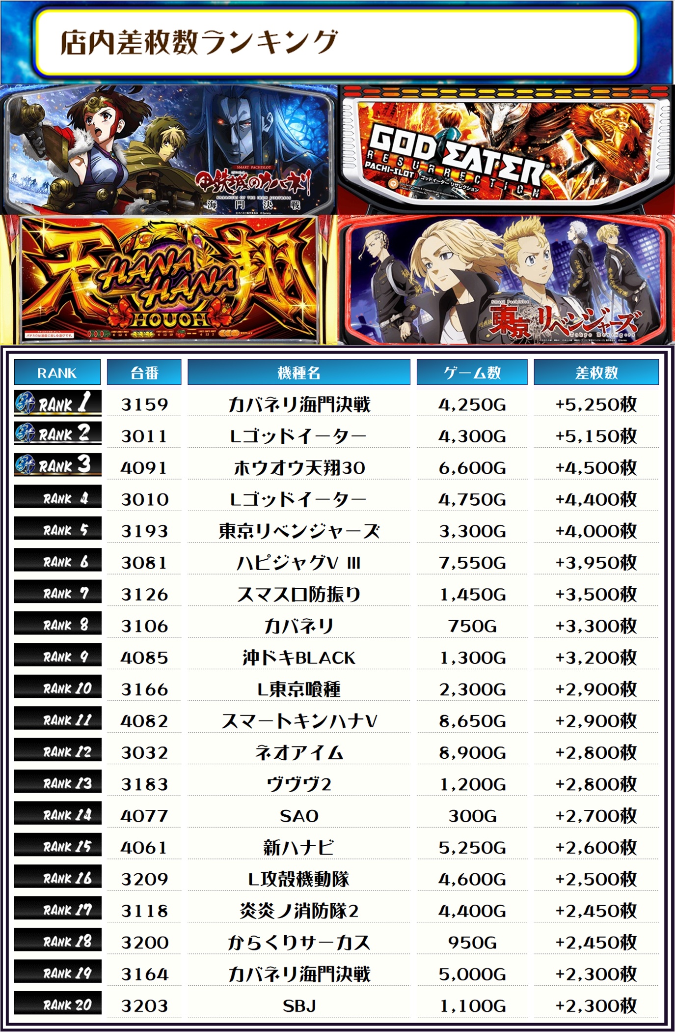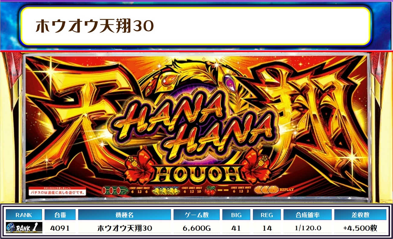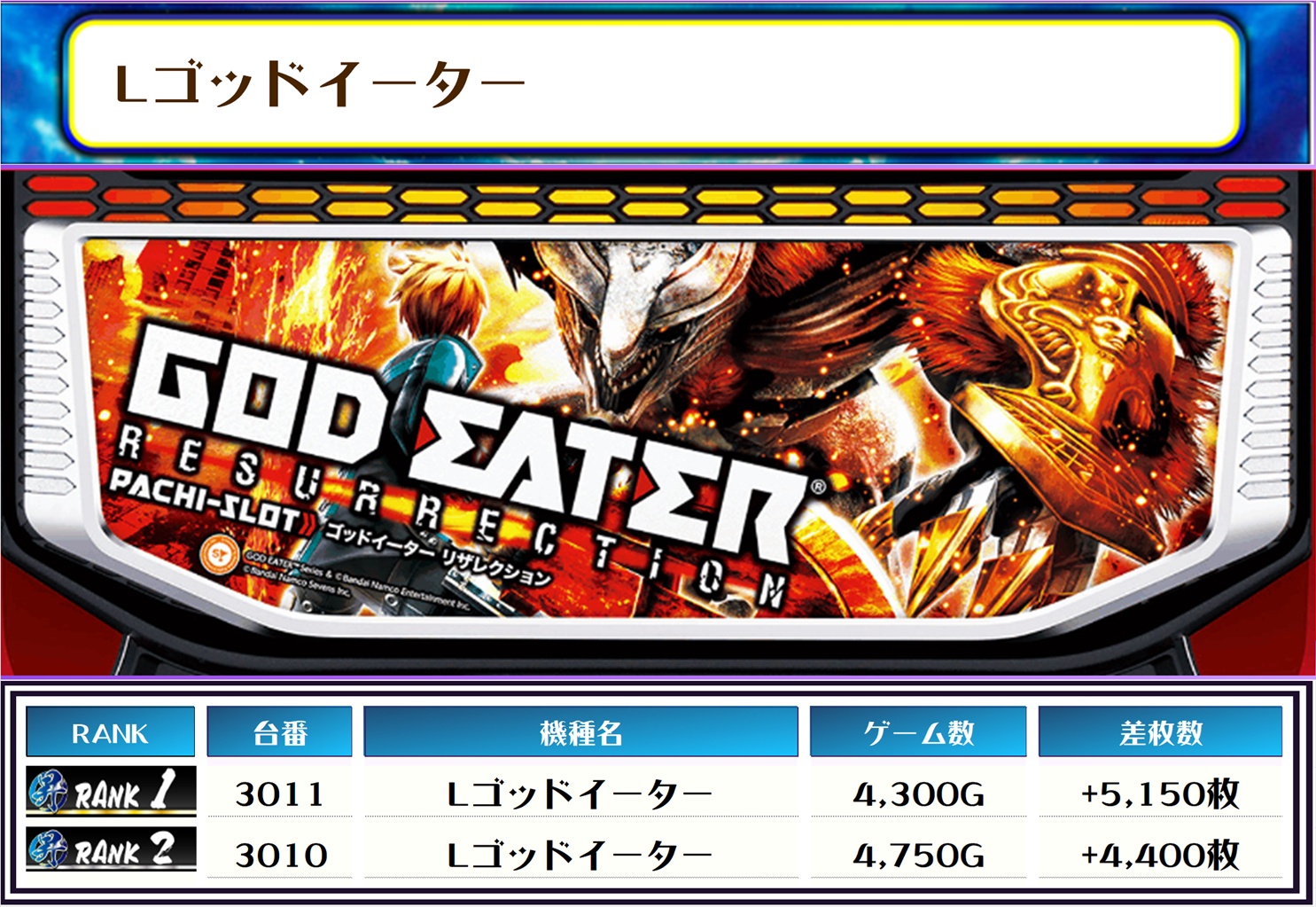 2位には【Lゴッドイーター・3011番台】の+5,150枚、3位には【ホウオウ天翔30・4091番台】の+4,500枚がランクインっ🏆🏆🏆🏆