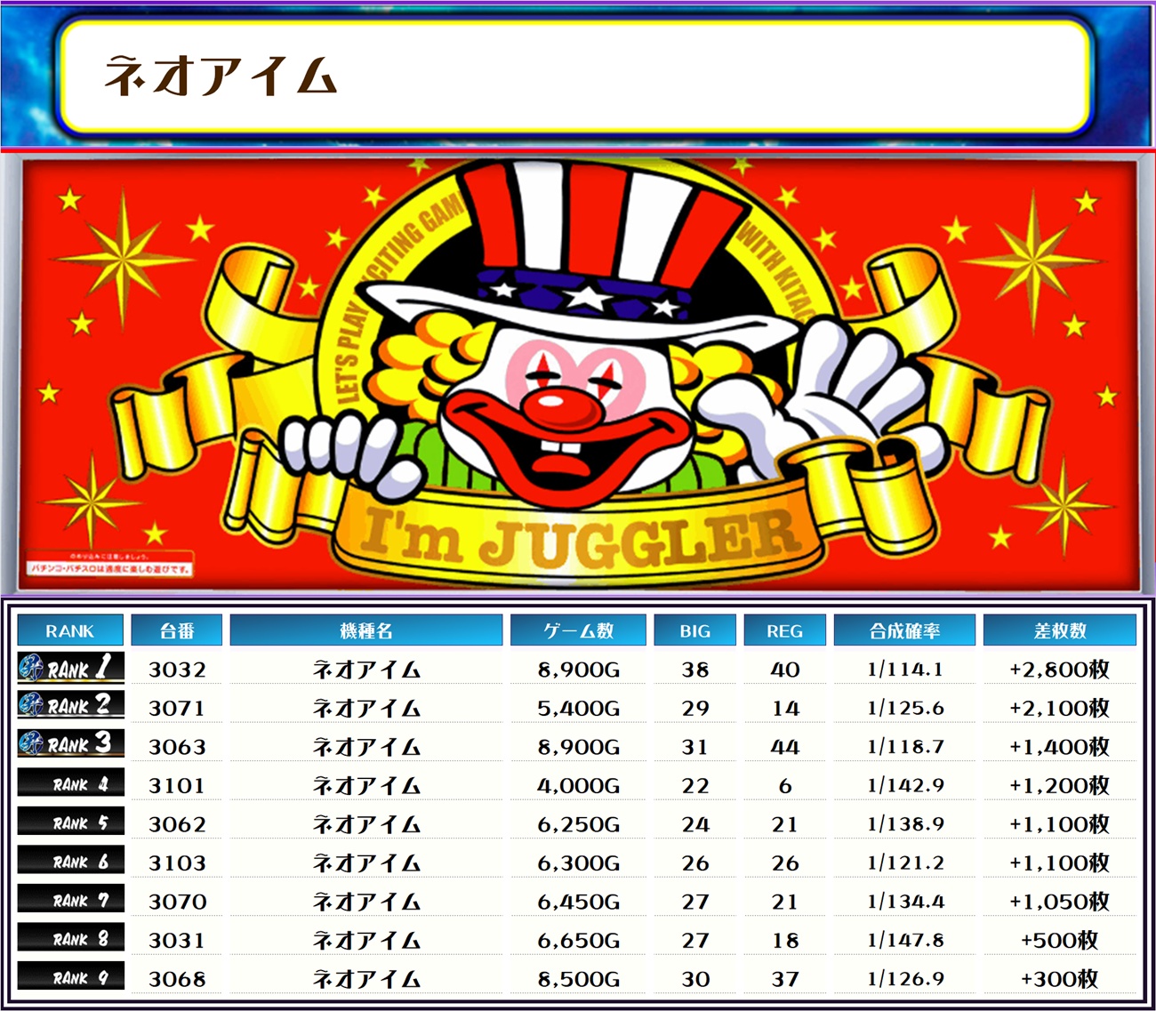 特にネオアイムは勝率が高かったです👏👏👏他ピックアップしたジャグ系も気になるところでした👌