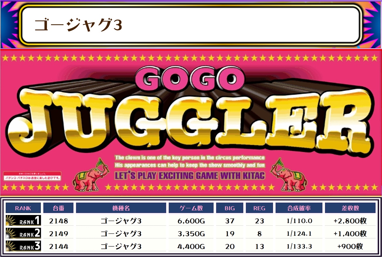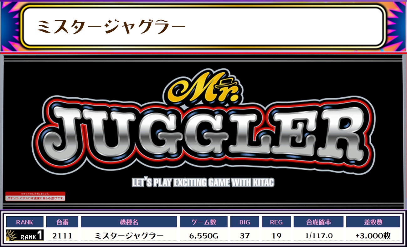 今回もジャグラー系が複数ランクインしています🔥🔥