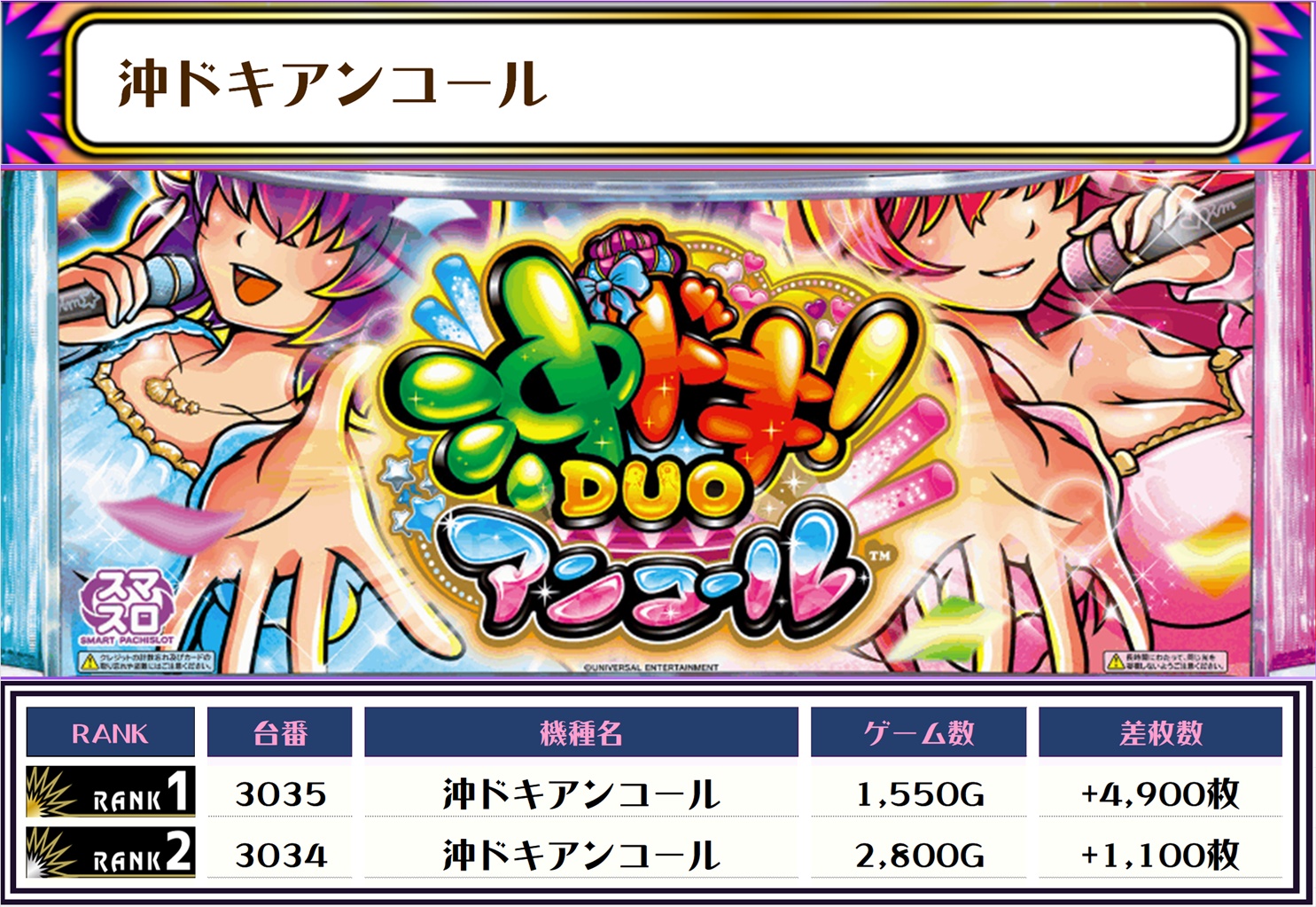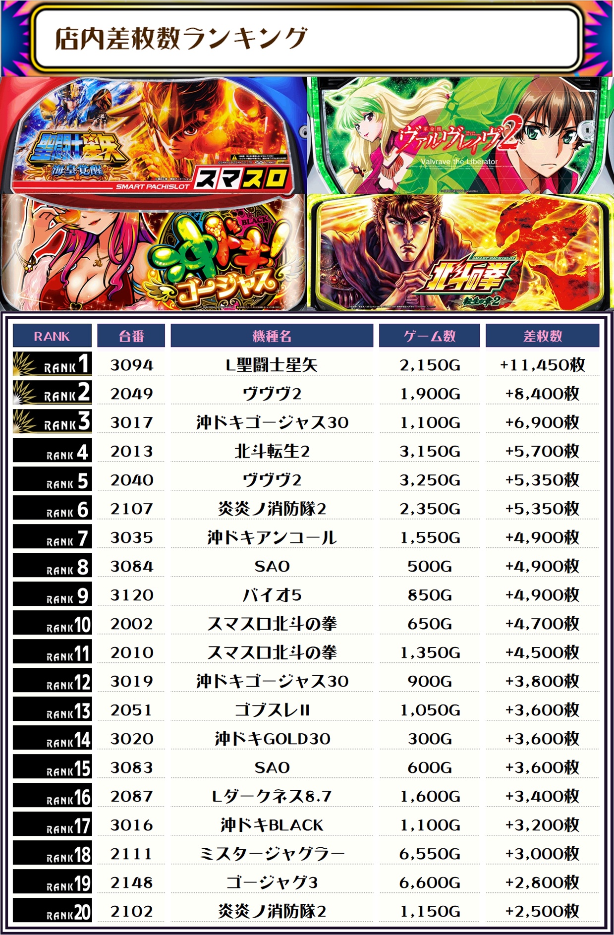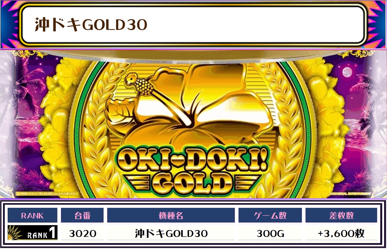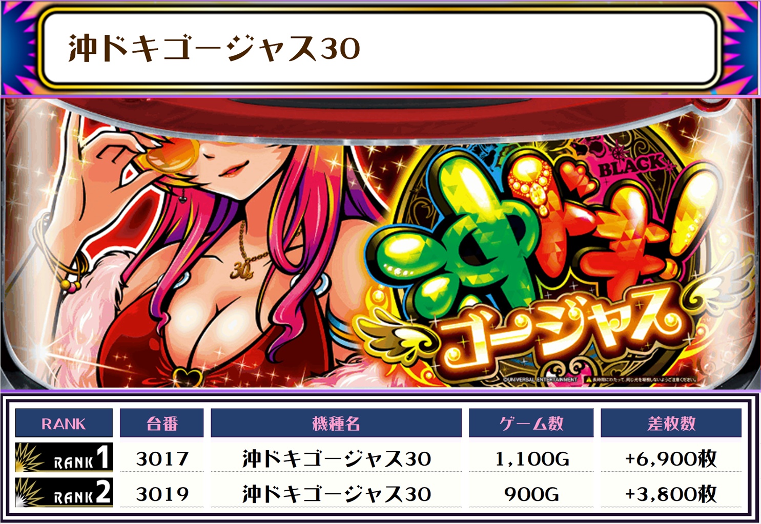 2位には【ヴヴヴ2・2049番台】の+8,400枚、3位は【沖ドキゴージャス30・3017番台】の+6,900枚がランクインっ🏆🏆🏆